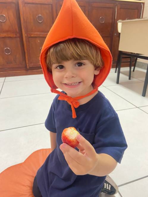 Numa atividade cheia de aprendizados e significados, o Maternal da Escola Infantil participou de um momento degustação, na quarta-feira, 23/11. Vestidos a caráter, os pequenos classificaram as frutas baseando-se nas cores, colocaram-nas nos lugares correspondentes e partiram para a prova, explorando sabores, cheiros e texturas. Estímulo a uma alimentação saudável e desenvolvimento das sensações através dos sentidos!