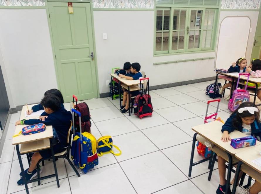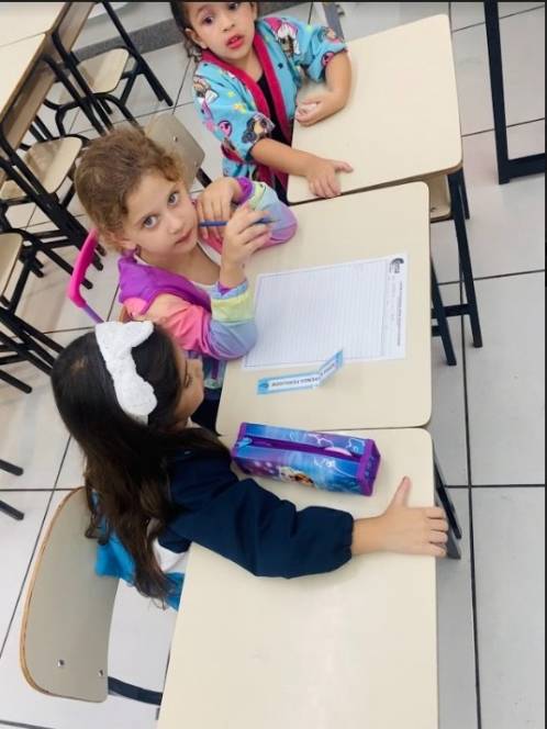 O 2º Período da Escola Infantil participou de um Ditado em Dupla, na segunda-feira, 21/11. A prática consiste em um aluno falar as letras que compõem o nome da figura apresentada e o outro registrar. Inovadora, a atividade permite a troca de ideias e uma interação significativa, na qual os colegas colaboram diretamente na aprendizagem um do outro.