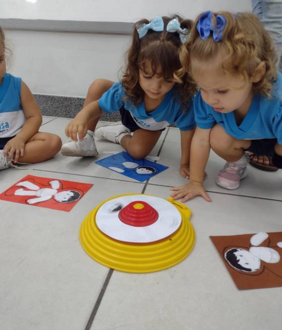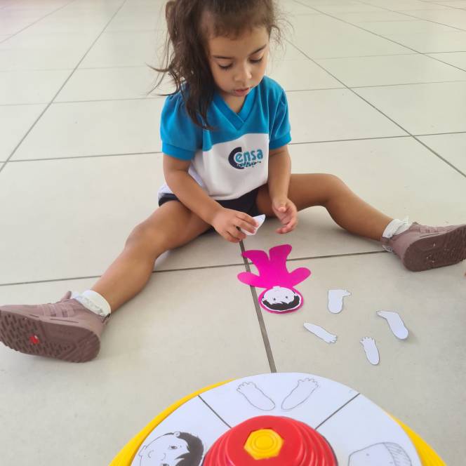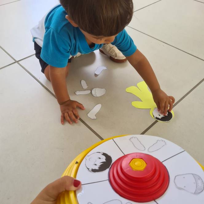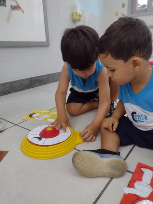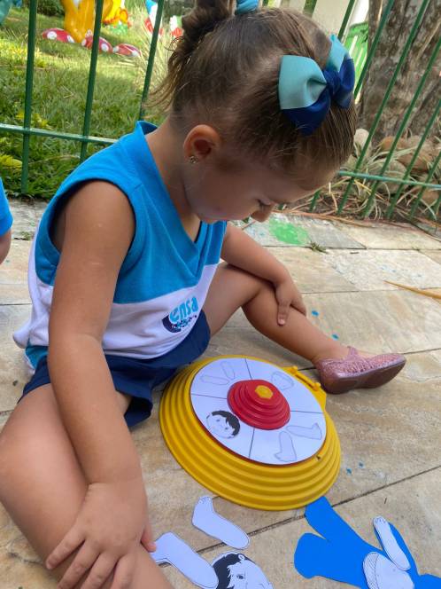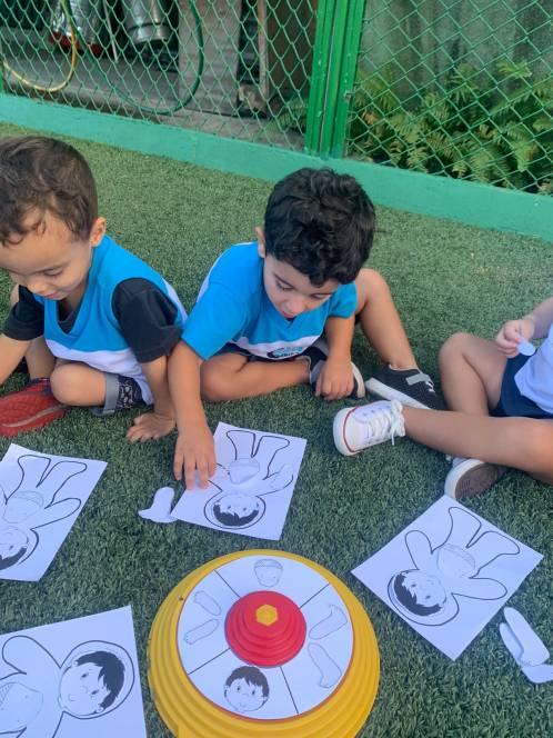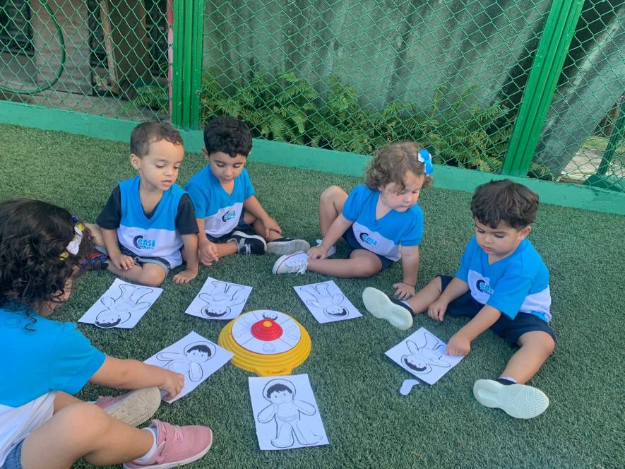 Em mais uma dinâmica sobre o conhecimento e reconhecimento do corpo humano, o Maternal da Escola Infantil do CENSA participou da Roleta, na sexta-feira, 24/03. O objetivo do jogo era preencher a silhueta recebida, com as partes que iam surgindo a partir de cada rodada da roleta. Foi um sucesso! Além de divertir e ensinar, a atividade trabalhou a concentração, a percepção visual e a linguagem, entre várias outras habilidades.