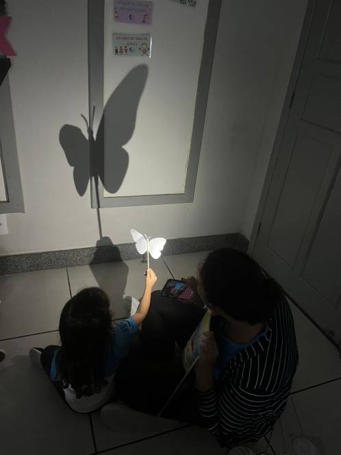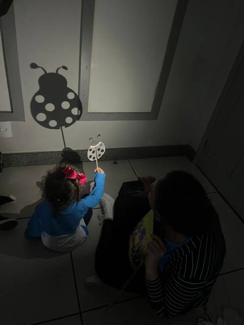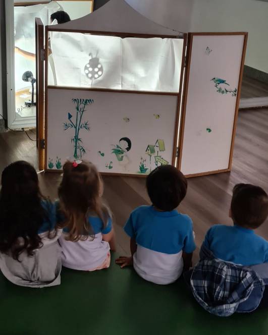 O Maternal da Escola Infantil do CENSA trabalhou o livro "A chuvarada", adotado no Programa de Leitura, com um Teatro das Sombras. A dinâmica consistiu em ouvir atentamente a história contada pela professora e descobrir a que personagem pertencia a sombra projetada simultaneamente. Uma experiência criativa que estimulou a percepção visual, a atenção sustentada, a imaginação e a linguagem.