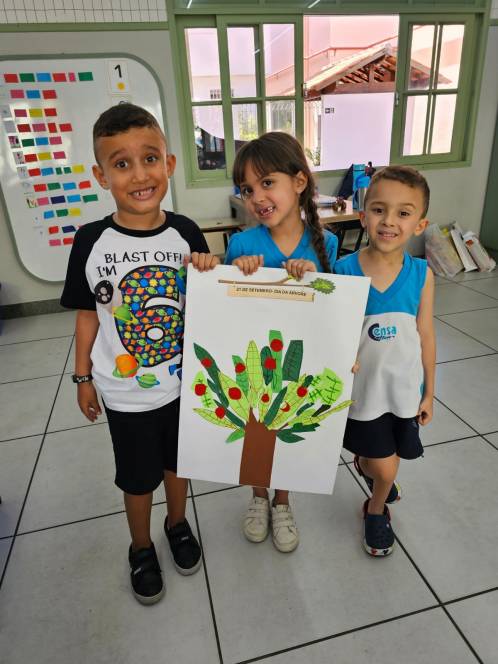 O Dia da Árvore, 21 de setembro, foi comemorado com ideias e atividades na Escola Infantil do CENSA. A criançada conversou muito sobre a importância das árvores na nossa vida, os cuidados necessários para preservar a natureza e as atitudes individuais com a casa comum. O dia terminou com uma atividade maker, com cada um criando sua própria árvore, utilizando diversos materiais. "A data incentivou a conscientização ambiental, que já estimulamos em nossos alunos, e a atividade prática não só ilustrou, como trabalhou a coordenação motora fina, movimento de pinça e funções cognitivas. Isso tudo de forma lúdica e grande interação dos pequenos", disse Liliana Nogueira, coordenadora do segmento.