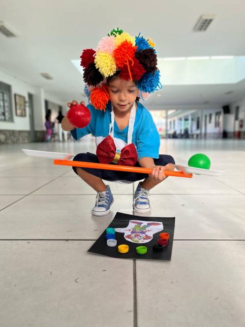 O 2º período da Escola Infantil do CENSA comemorou o Dia do Circo, 27/3, como o tema merece! Enfeitada com os acessórios dos palhaços, a criançada participou de uma dinâmica motora alegre e divertida, que estimulou habilidades essenciais para a sua faixa etária como o equilíbrio, coordenação motora ampla, pareamento de cores e coordenação olho/mão. Foi uma festa!