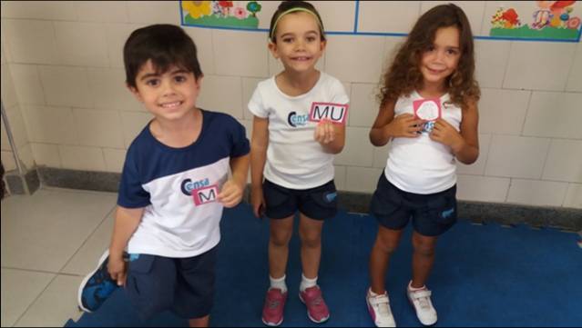 Juntos, através das sílabas e das imagens cujos nomes iniciam com a letra M, puderam perceber o valor sonoro da letra estudada e, ainda, identificar os objetos cujos nomes iniciam com a mesma letra em estudo.