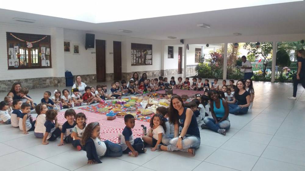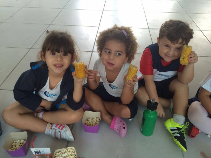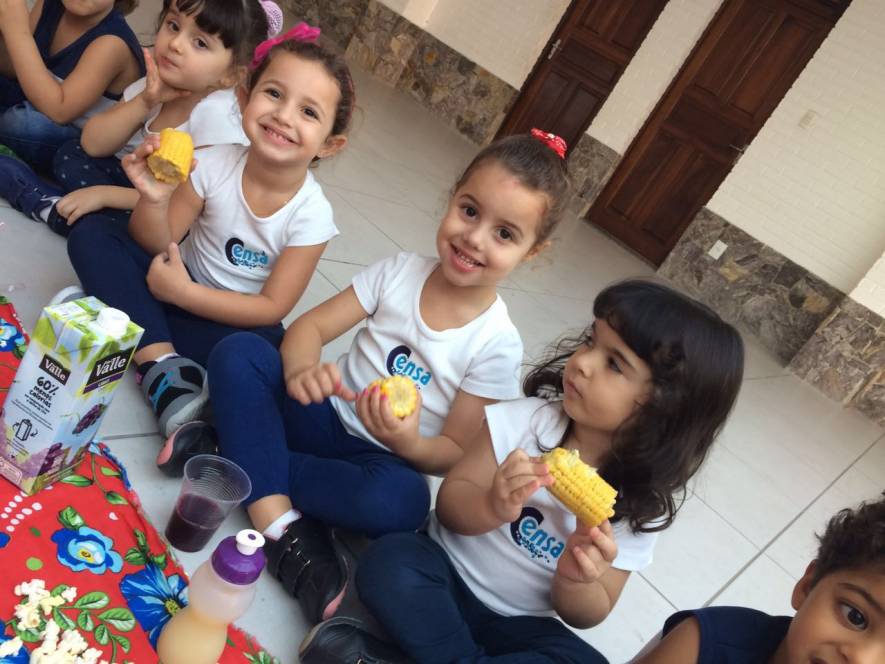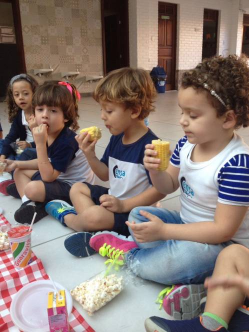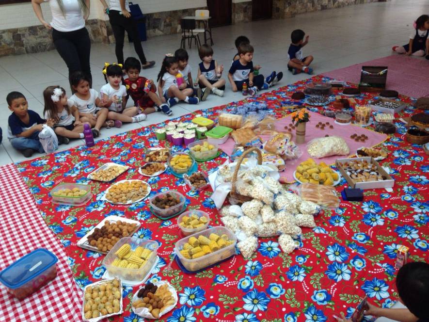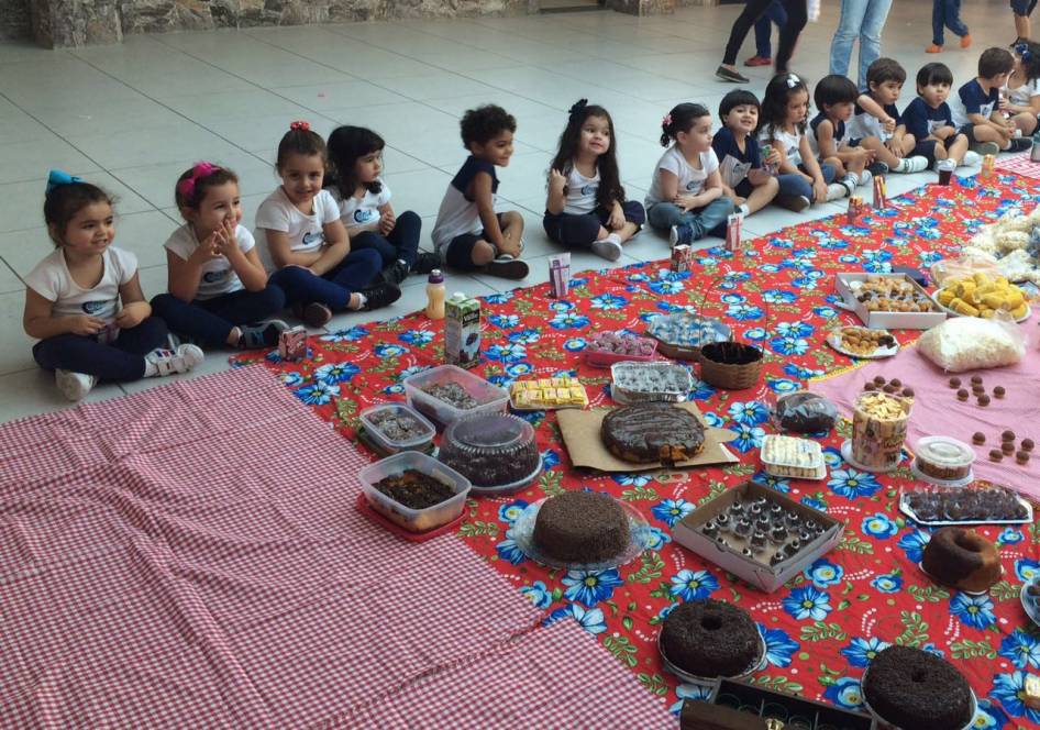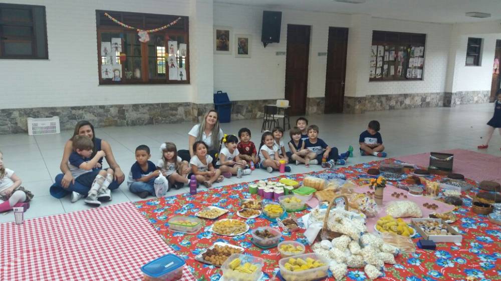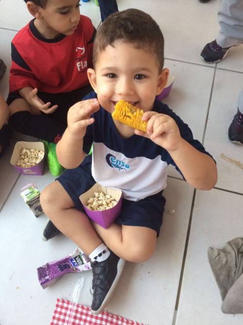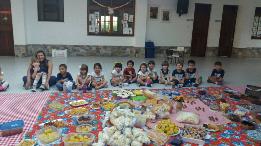 A Escola Infantil não se cansa de comemorar São Pedro e São João! Reunidas em torno de um belo lanche, as crianças do 1° período compartilharam as delícias típicas das Festas Juninas, na segunda, 11 de julho.