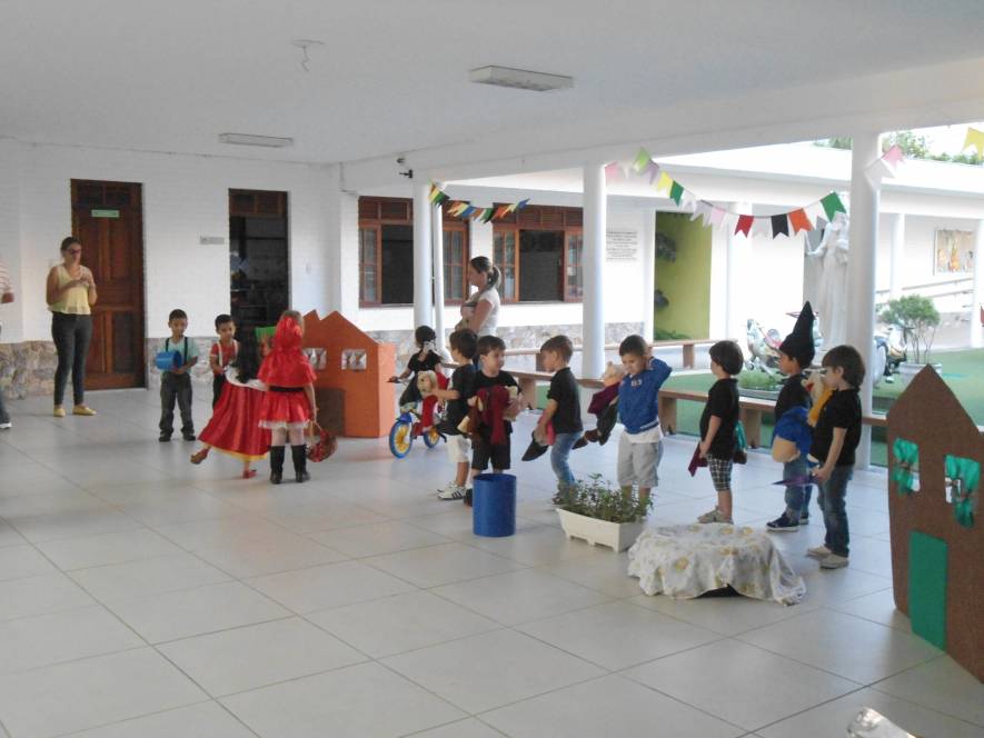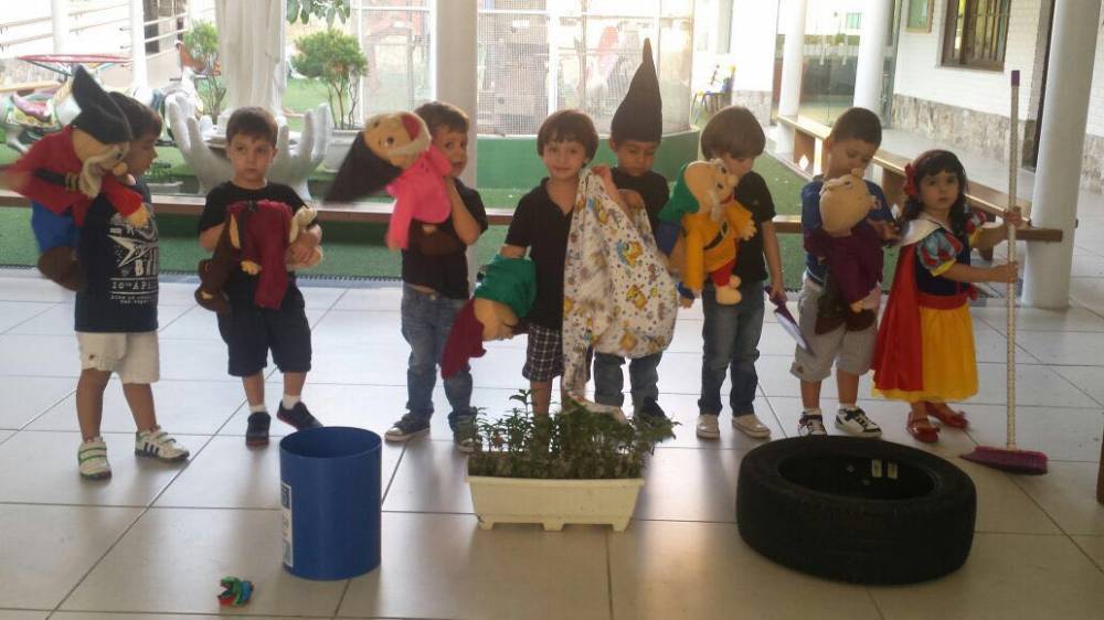 - 1º Período: usando histórias e personagens do universo infantil, os alunos dramatizaram os cuidados e práticas que devemos ter para preservar nosso planeta. Chapeuzinho Vermelho e o Lobo Mau mostraram que não podemos jogar lixo no chão, Branca de Neve e os sete anões, que devemos cuidar da nossa casa para que não deixemos água parada, evitando os focos do mosquito da Dengue, e os Três Porquinhos, que não podemos desperdiçar a água.