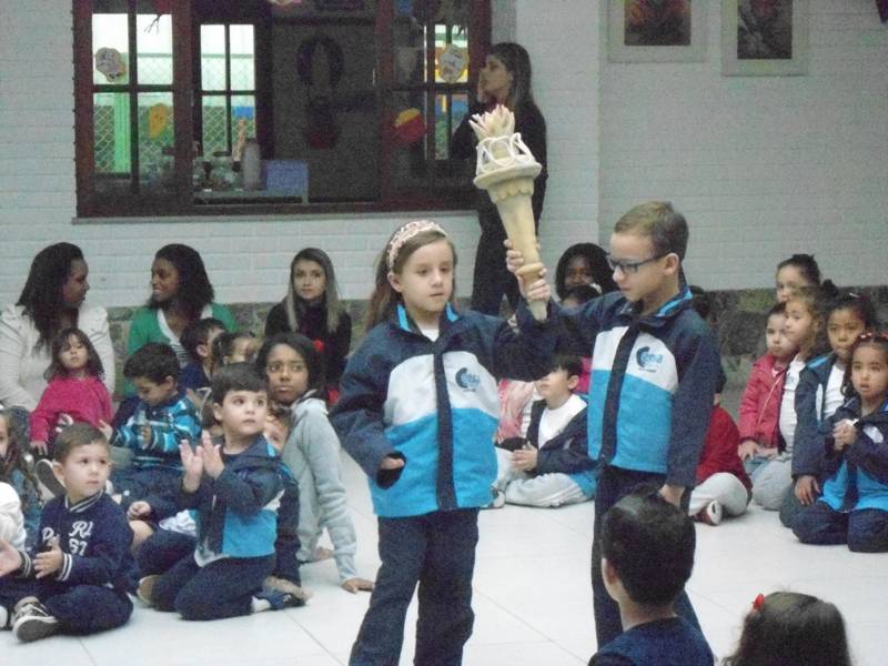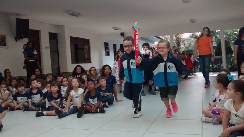 Empolgada com o grande evento esportivo que este ano acontece no nosso país, a Escola Infantil do CENSA recebeu seus pequenos em clima de Olimpíada. Durante a primeira semana aula, os alunos vivenciam seu próprio evento esportivo, com direito a todas as emoções proporcionadas pelo esporte. A abertura da Mini Olimpíada aconteceu no dia 2 de agosto, com desfile das turmas, tocha olímpica, hino nacional e explicação sobre o significado dos arcos. A partir daí, começaram as disputas nas mais diversas modalidades: corrida, arremesso, basquete, futebol e cabo de guerra entre outras.
