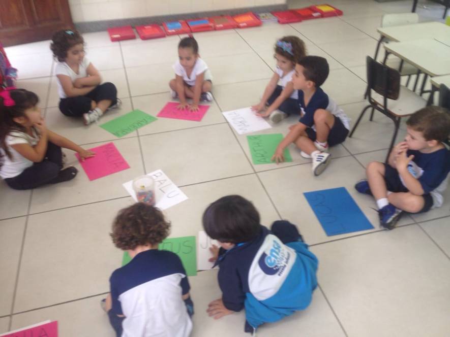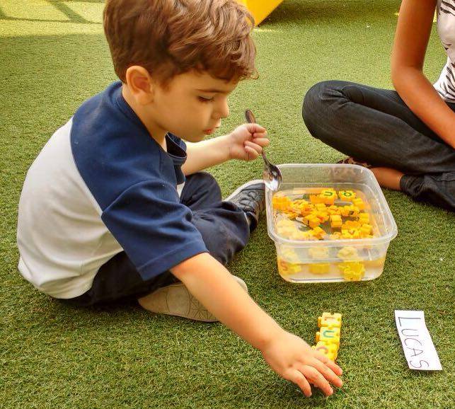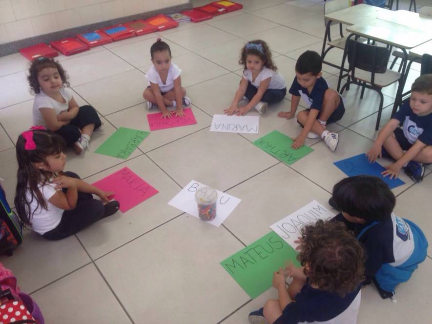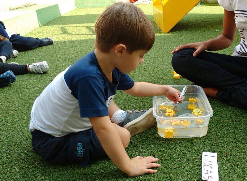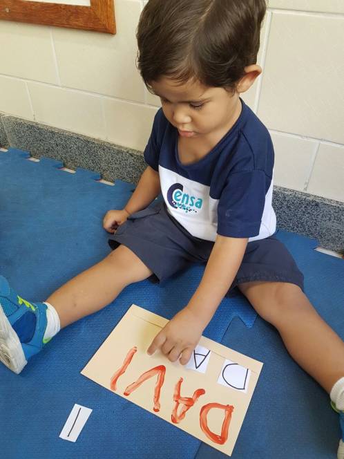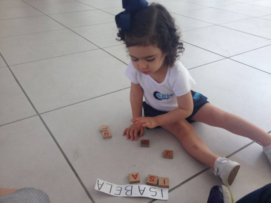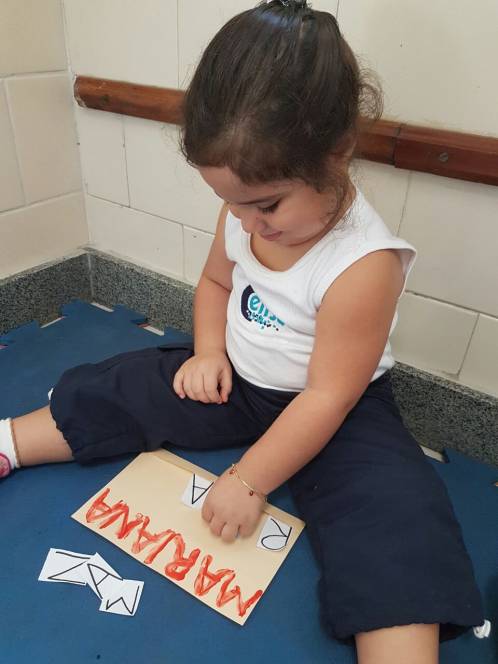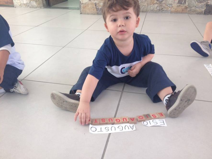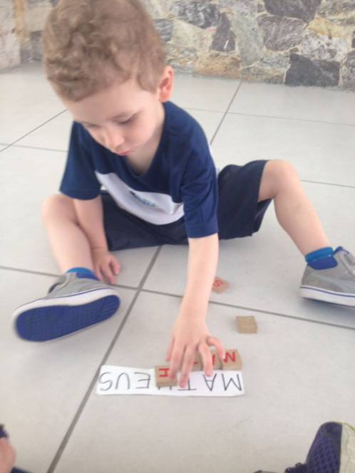 As turmas do maternal realizaram uma atividade muito rica de escrita do nome. As crianças foram incentivadas através de diversas brincadeiras como: bingo, pescaria, varal, letras móveis, plaquinhas entre outras; a achar as letras que compõem o nome de cada uma delas e arrumá-las de forma correta, formando o seu próprio nome.