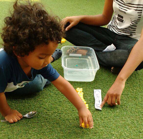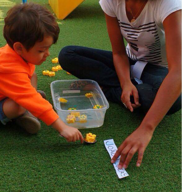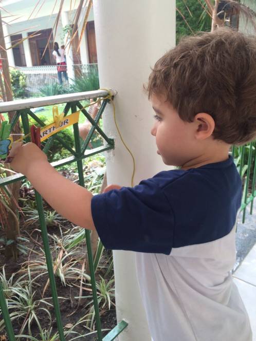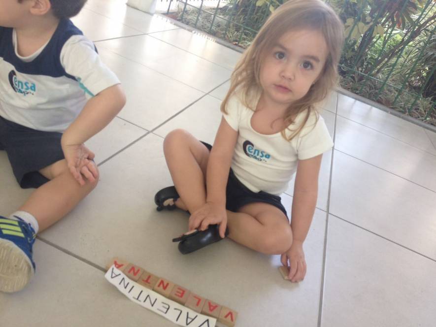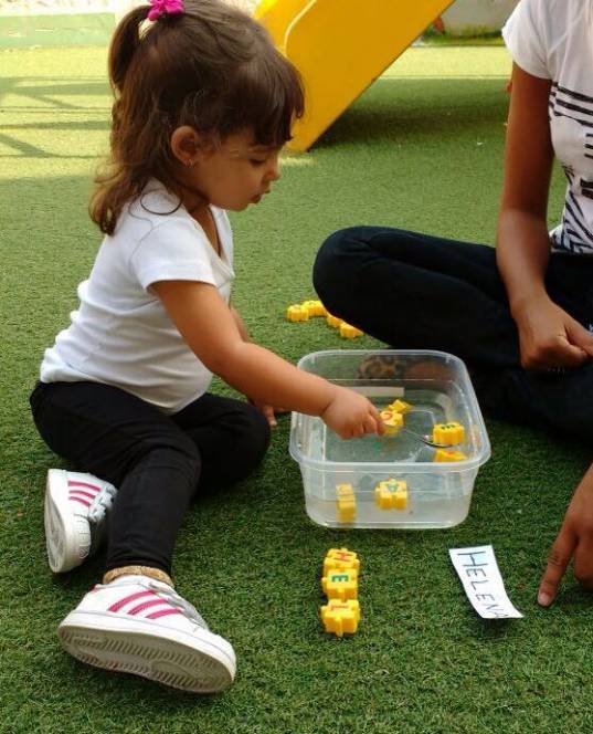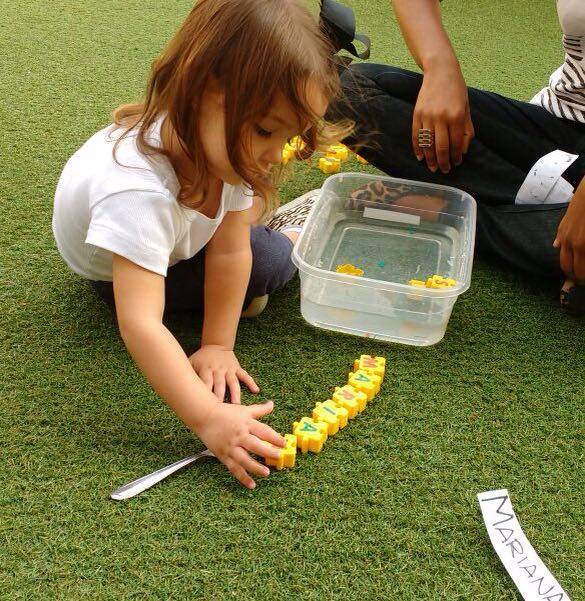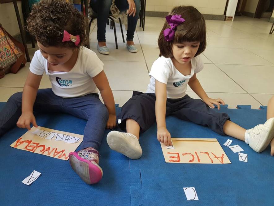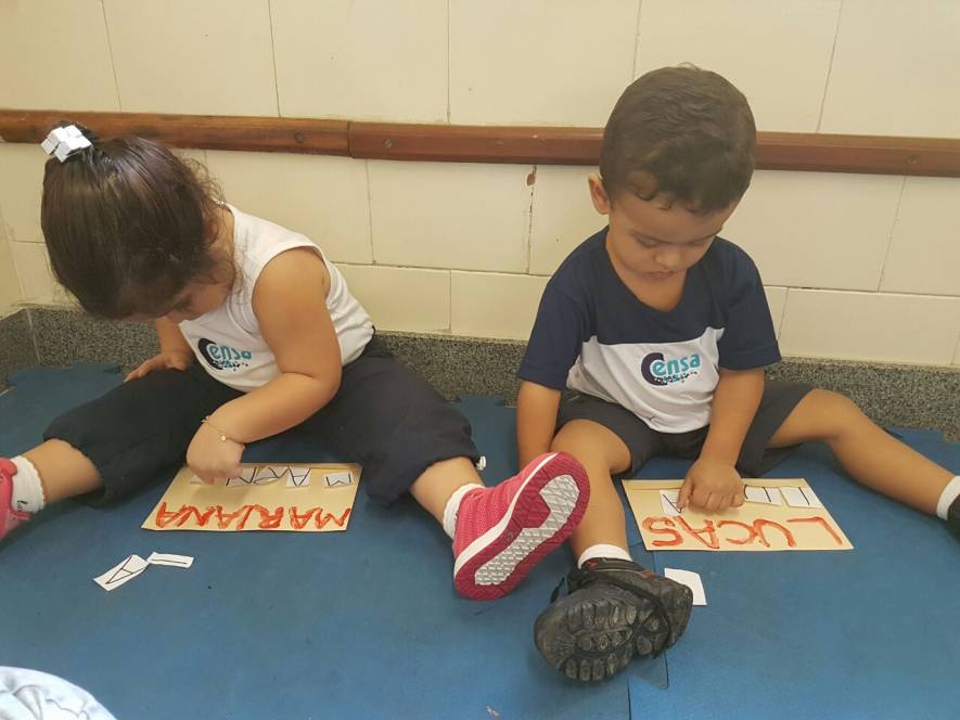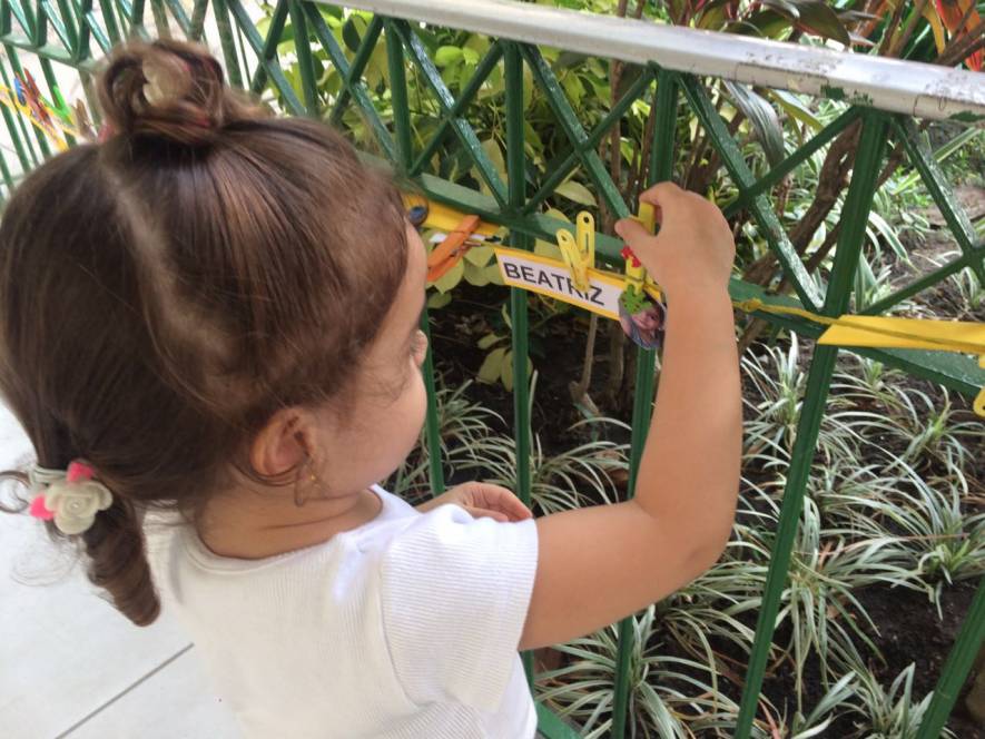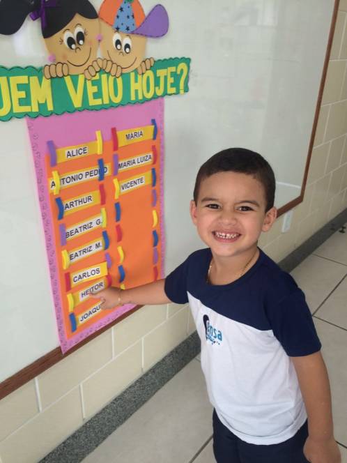 As turmas do maternal realizaram uma atividade muito rica de escrita do nome. As crianças foram incentivadas através de diversas brincadeiras como: bingo, pescaria, varal, letras móveis, plaquinhas entre outras; a achar as letras que compõem o nome de cada uma delas e arrumá-las de forma correta, formando o seu próprio nome.