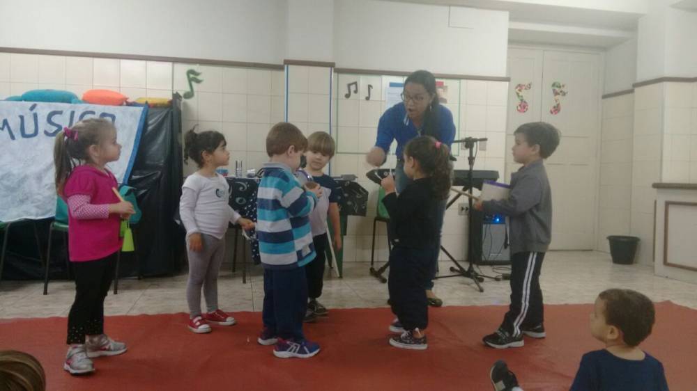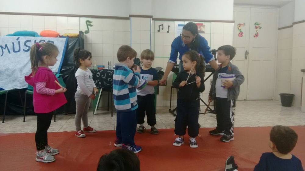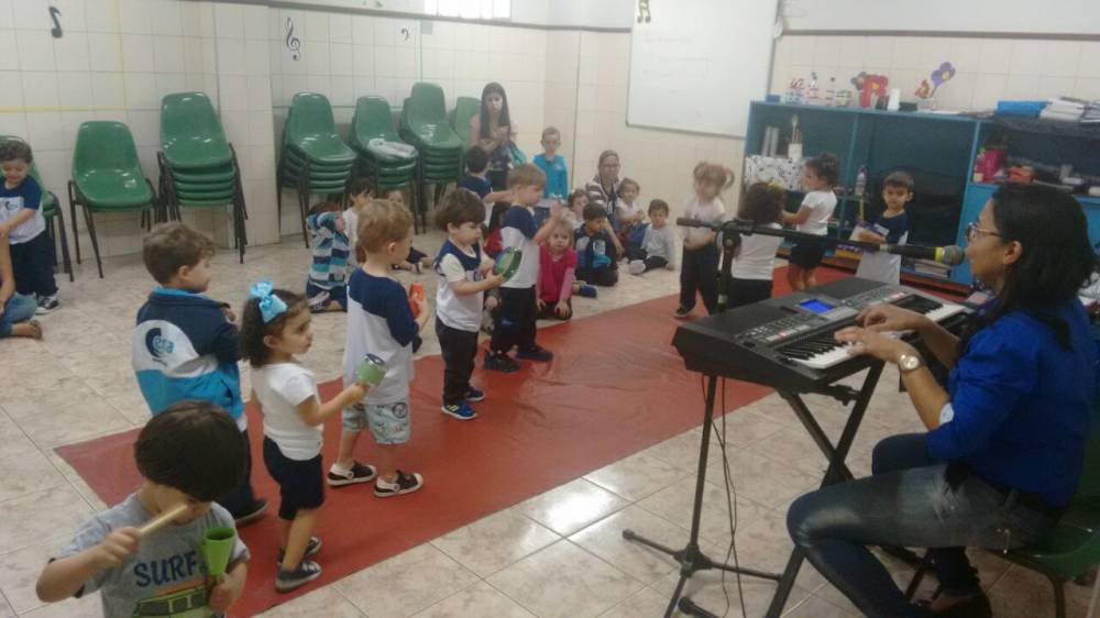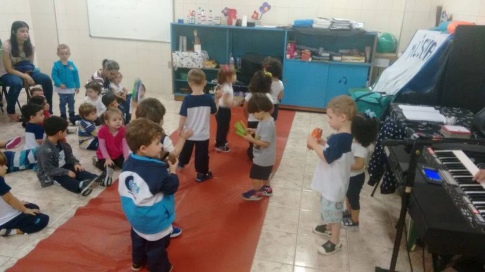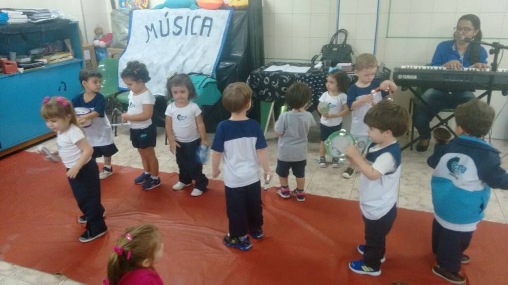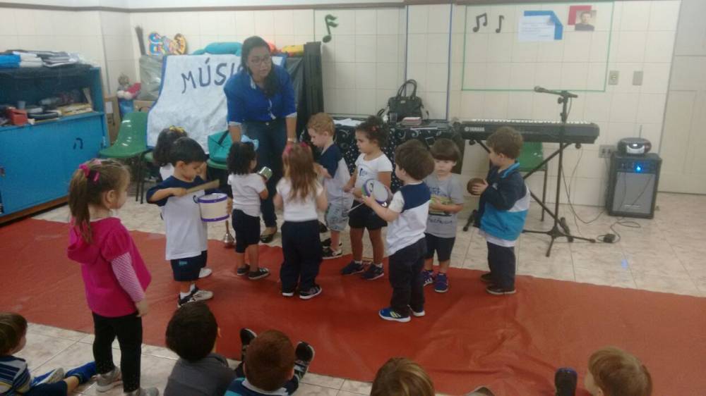 Na aula de música com Tia Luciana, as crianças do turno da manhã foram desafiadas a identificar o som e o nome dos instrumentos musicais. Foi um momento de muita curiosidade em meio aos vários sons produzidos pelos diferentes instrumentos.
