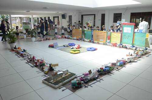 Divididas por temas, as turmas trabalharam a influência do lixo eletrônico na nossa saúde, o desmatamento, a energia com os recursos naturais, o descarte correto do lixo tecnológico, o reaproveitamento de cascas de alimentos, da água da chuva e, ainda, criaram um supermercado consciente e natural. Temas muitas vezes complexos transformados em conhecimento para a vida das crianças, estudado pelas professoras e repassado de forma significativa.
