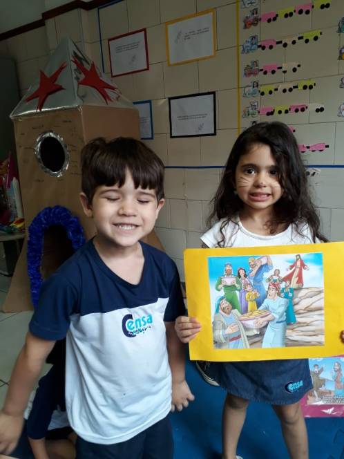 Encerrando o mês da Bíblia, o 2° período da Escola Infantil do CENSA participou de uma Gincana, no dia 28 de setembro. Com entusiasmo responderam as perguntas e identificaram as figuras correspondentes a cada Milagre de Jesus apresentado através do Livro Sagrado.