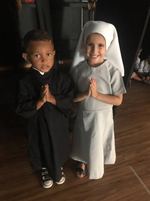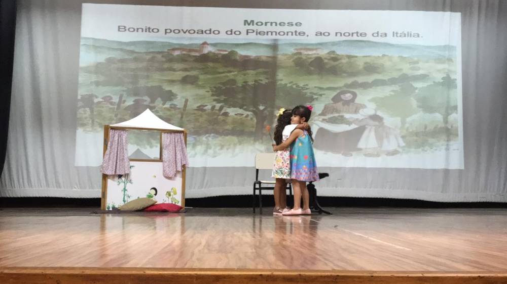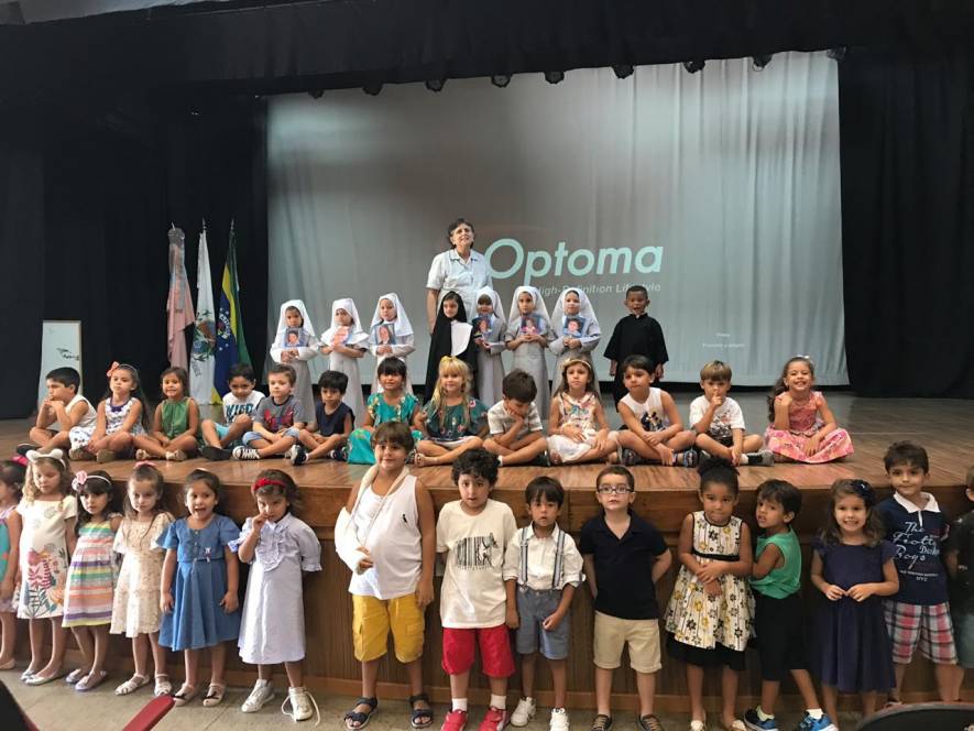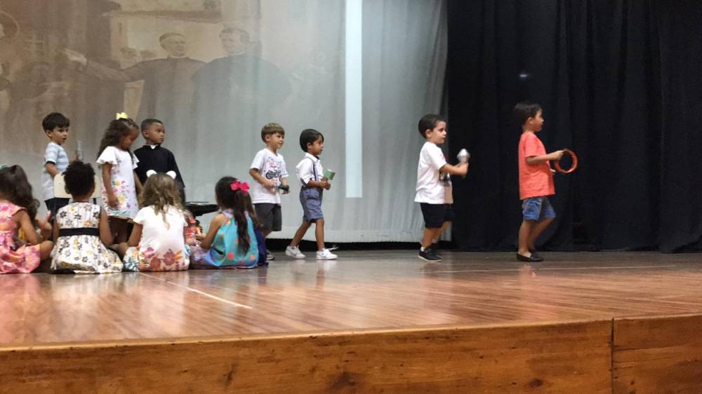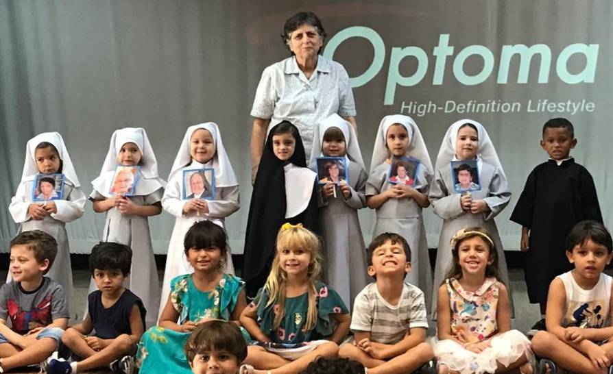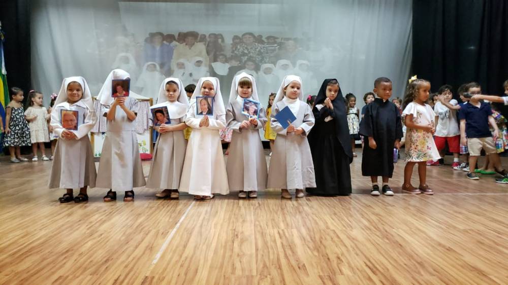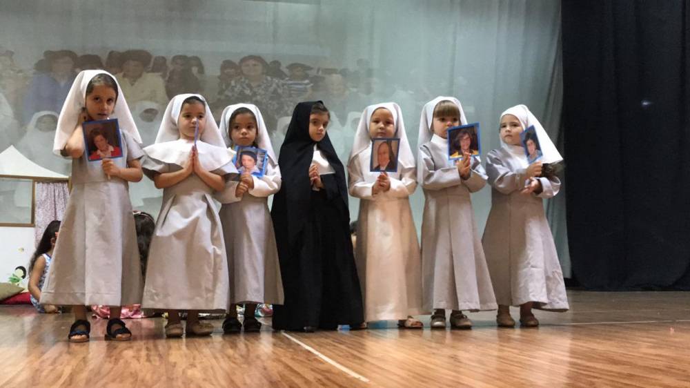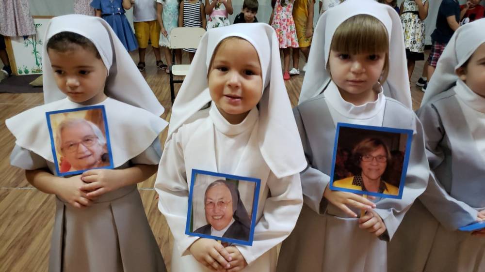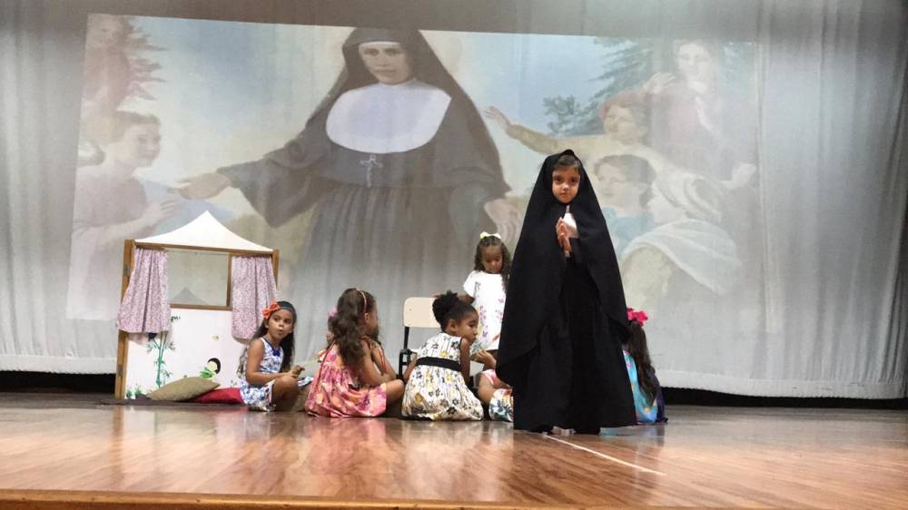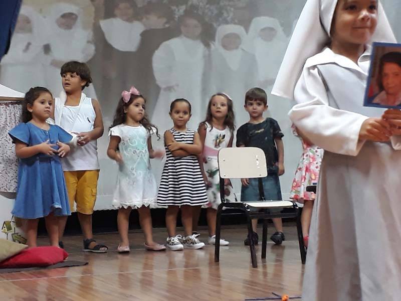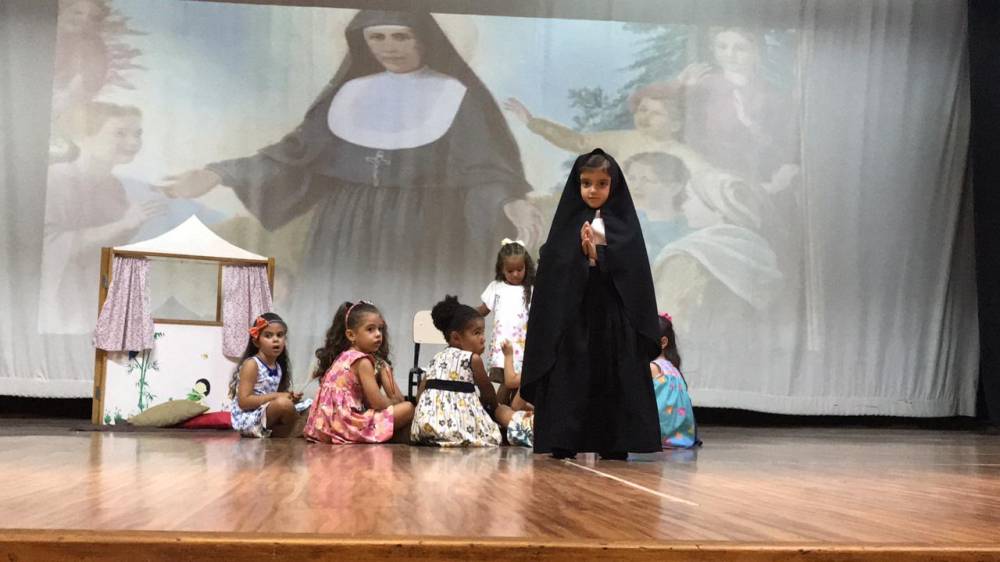 Na sexta-feira, 5 de abril, a garotada assistiu a um filme sobre a vida e missão de Madre Mazzarello, apresentaram um singelo teatro contando a história de Main e, ainda, agradeceram a Madre Yvonne e a todas as Irmãs que dedicaram suas vidas à formação dos jovens.