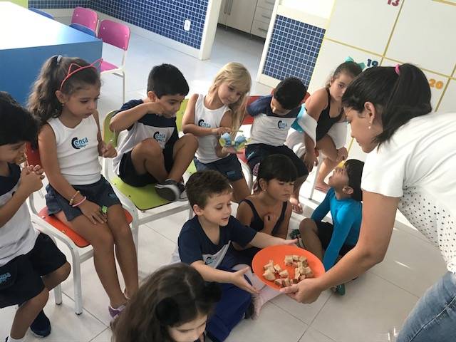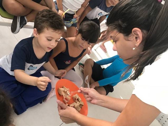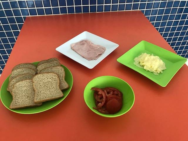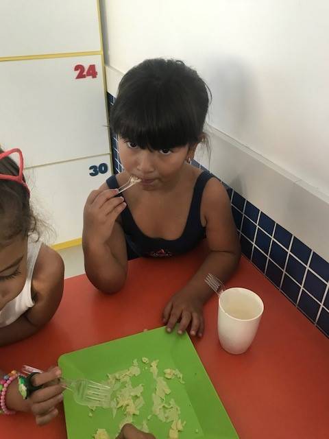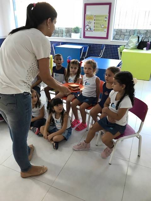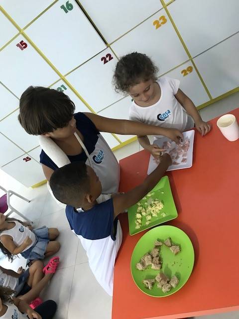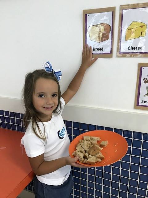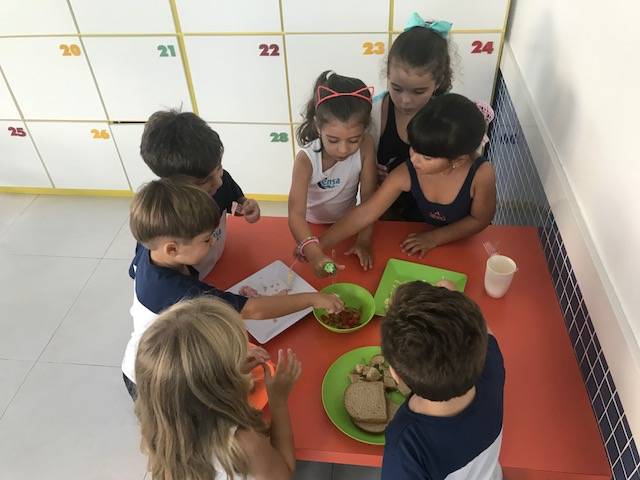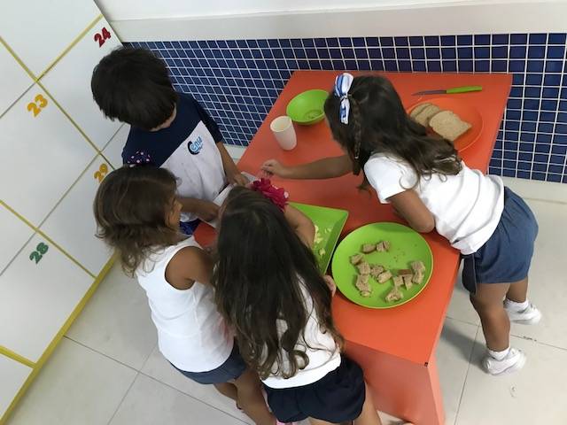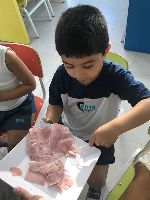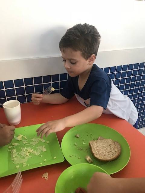 O 2º Período da Escola Infantil do CENSA está aprendendo na prática o vocabulário da unidade 2 do livro "Line", do programa Bilíngue. Na aula de quarta-feira, 24 de abril, a criançada montou e experimentou um gostoso "sandwich" com "bread", "cheese", "ham" e "tomato". Delicious!