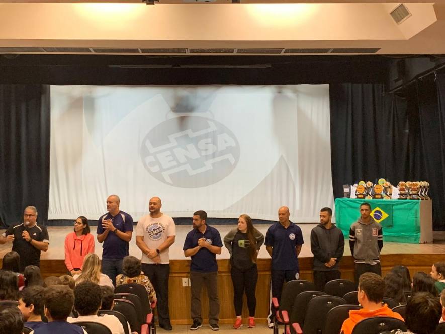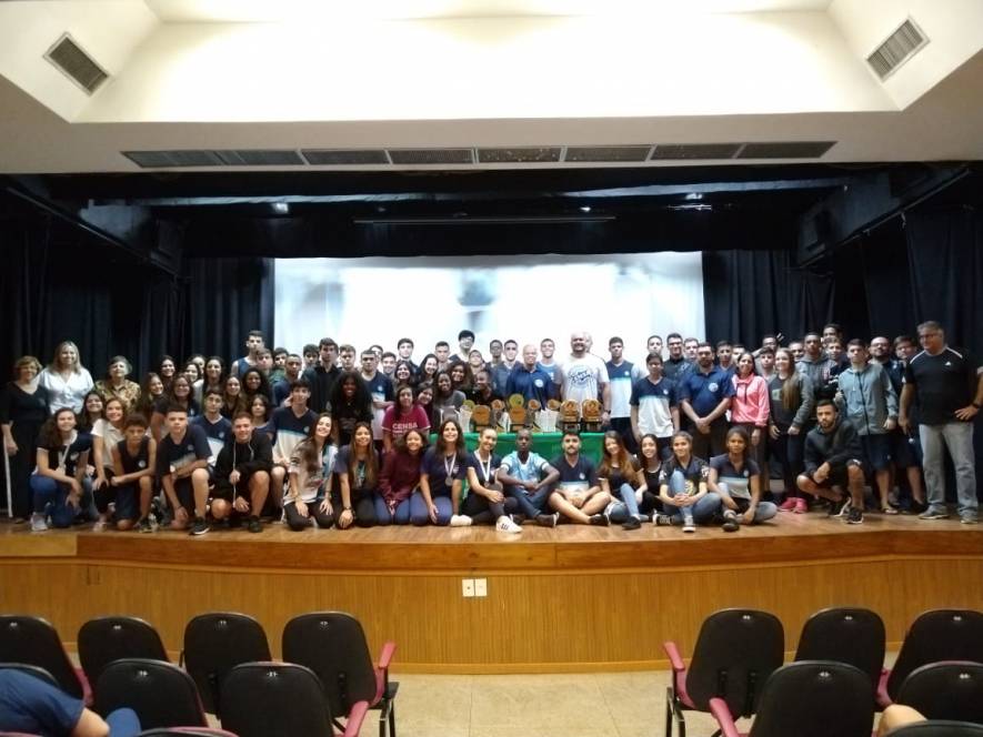A equipe de esporte do CENSA reuniu o Fundamental II e o Ensino Médio na manhã de 21 de novembro para um balanço das competições de 2019. E foram muitas! Intercolegial, Jogos da ANEC, Olimpíada da Record/Firjan/SESI, JECs e JES/SESC. Orgulhosos dos resultados, os alunos comemoraram as conquistas e, ainda, assistiram alguns vídeos de atletas do 3º ano que, este ano, se despedem da escola.