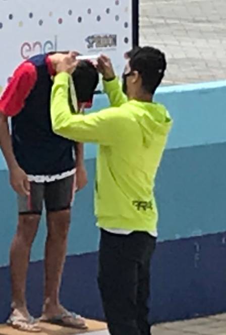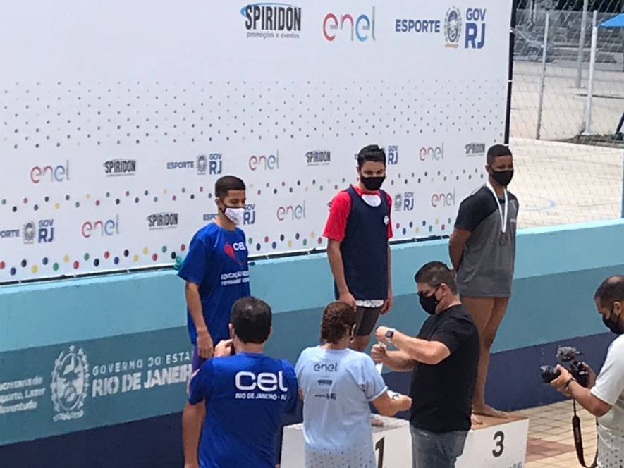 Cauet Rocha, aluno do 1º ano do Ensino Médio do CENSA, mais uma vez subiu ao pódio nos Jogos Estudantis do Rio de Janeiro. O atleta, de 16 anos, já havia sido campeão estadual de Natação em julho, disputando as modalidades borboleta e livre. Desta vez, recebeu as medalhas de bronze nos 100 metros borboleta e ouro nos 100 metros costas, na categoria 15/17 anos, entregues pelo atleta olímpico Guilherme Costa.