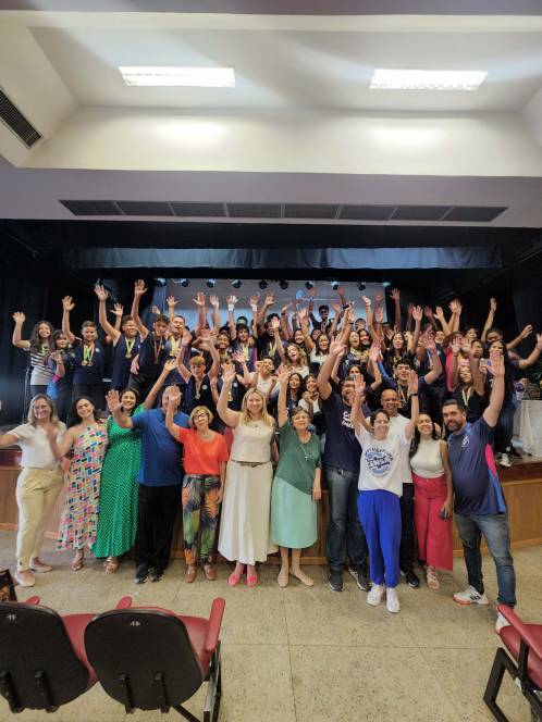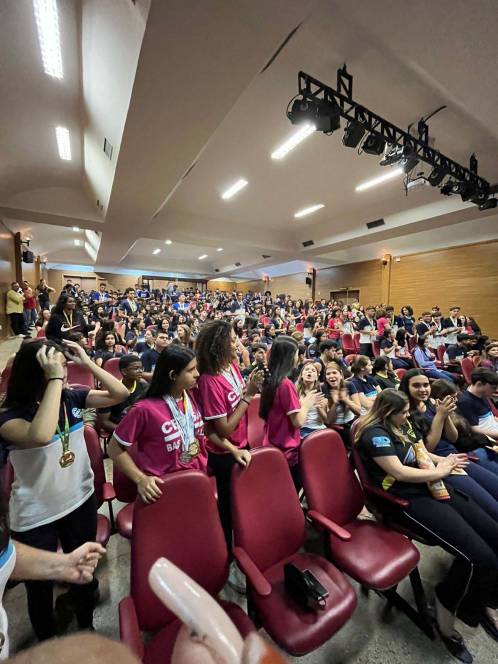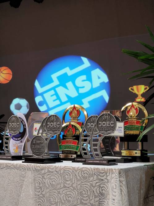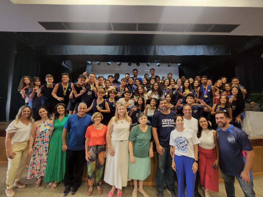 O esporte do CENSA também teve sua celebração de final de ano. Afinal, foram muitos títulos e grandes campeonatos disputados ao longo de 2023. Reunidos no teatro da escola, na quinta-feira, 23/11, os alunos/atletas foram parabenizados pela diretora Ir. Rosa Idália Pesca, pela vice Beth Landim, e pelo coordenador Rodrigo Rios, grandes incentivadores do esporte. "Foi um ano de muito trabalho e excelentes resultados.