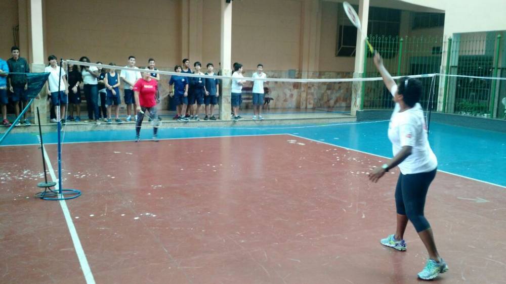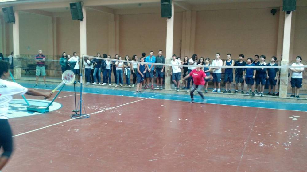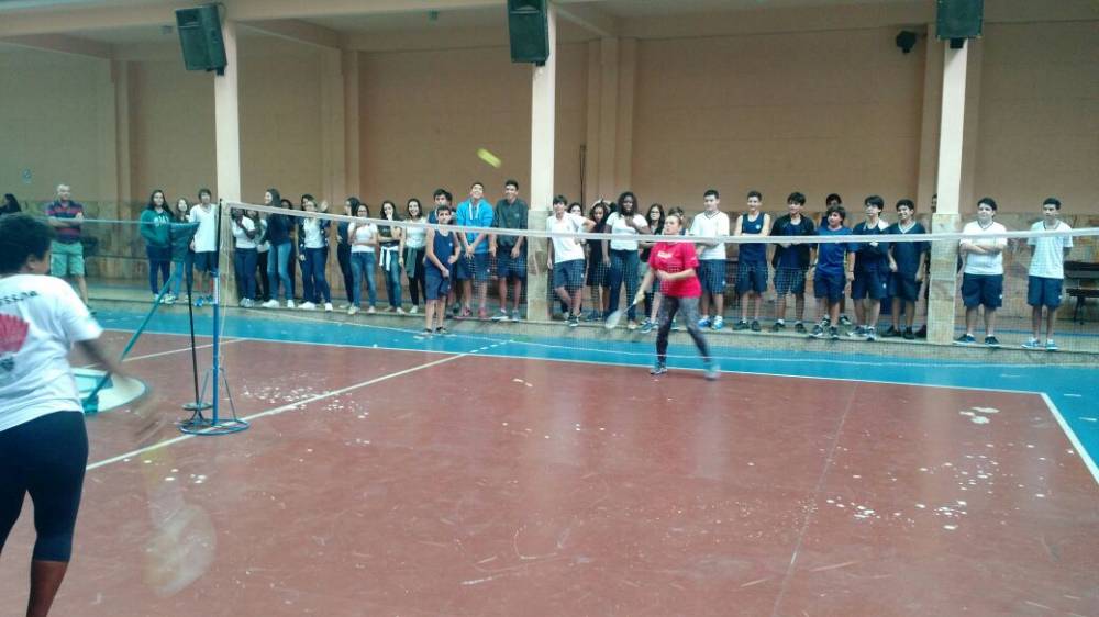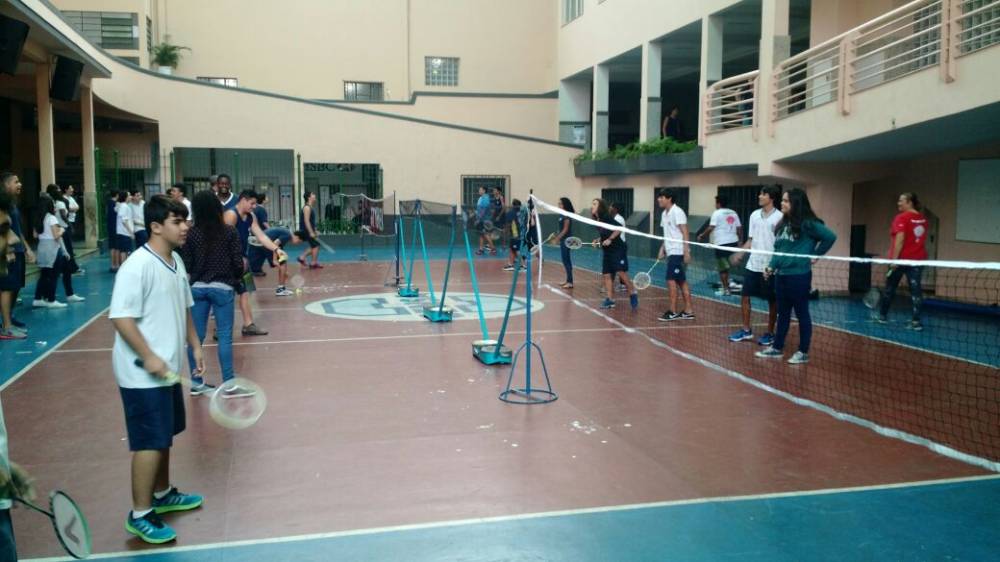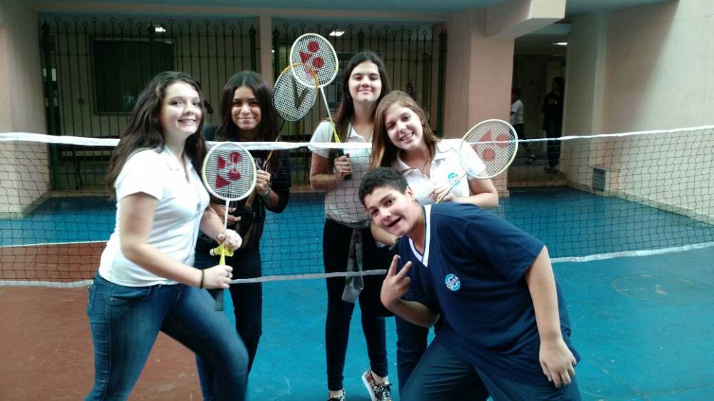 Lançado esse ano pelo CENSA, O Melhor do Intervalo tem movimentado o recreio dos alunos do Auxiliadora. Slackline, totó e zumba já animaram a garotada e muitas outras novidades já estão programadas. Nessa segunda, 6 de junho, foi a vez do Badminton. O esporte foi apresentado pelas professoras Andreza Manhães e Andrea Almeida, membros da Federação de Badminton do Rio de Janeiro, que, após uma demonstração prática, convidaram os alunos para pegarem nas raquetes e se divertirem.