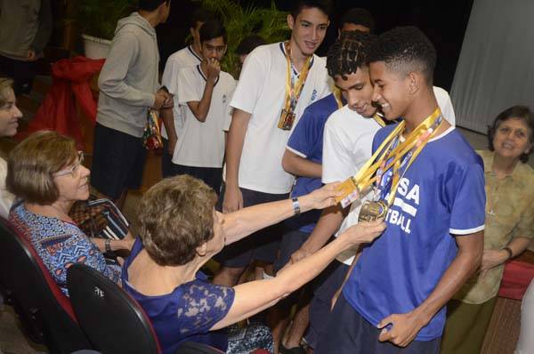 O esporte do Auxiliadora fechou o ano com chave de ouro. Fazendo um balanço dos resultados obtidos nos diversos campeonatos que participou, o CENSA reuniu os alunos no auditório da escola, nos dias 21 e 23 de novembro, para apresentar suas conquistas. Felizes e orgulhosos, os atletas agradeceram à diretora, Ir. Rosa Idália Pesca, pelo incentivo recebido ao longo do ano, e aos técnicos, que tanto se empenharam. Parabéns, atletas! Pelos títulos, pela garra e pela vontade de vencer!