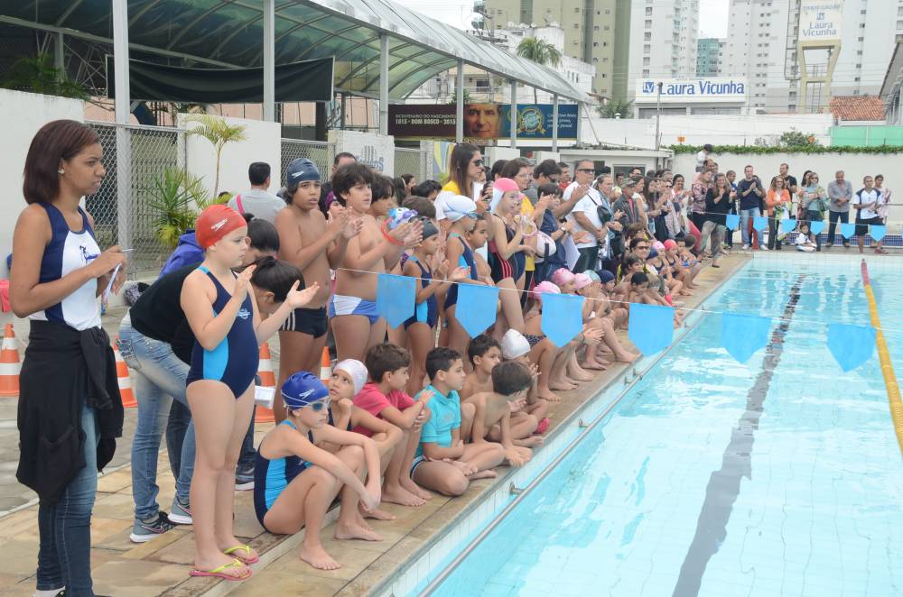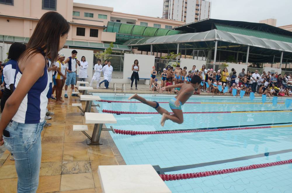 A Escolinha de Esportes do Censa promoveu o Festival Infanto-juvenil de Natação, no último sábado, 16 de maio. O evento, que este ano comemorou os 90 anos do Auxiliadora, foi um sucesso de público, com a presença de pais e amigos incentivando a garotada. O tempo fechado não desanimou os alunos/atletas que se jogaram na piscina com fôlego de campeões para disputar as provas de crawl, peito, medley, borboleta e costas.