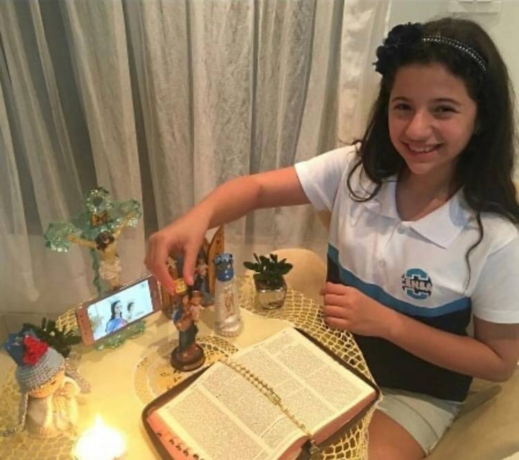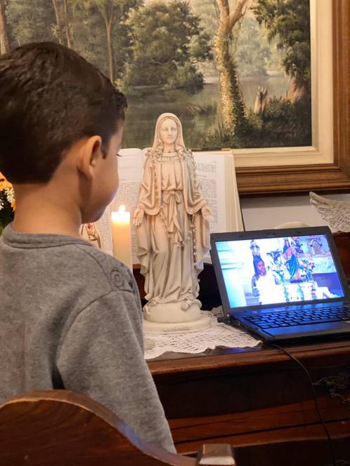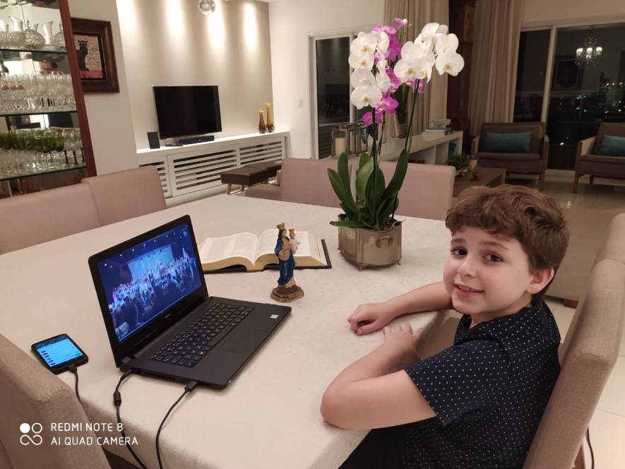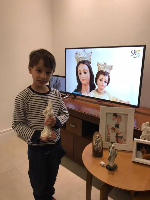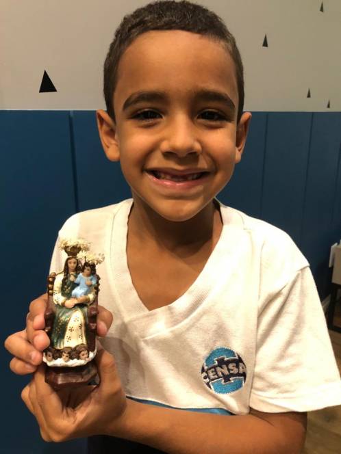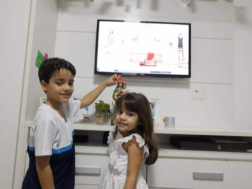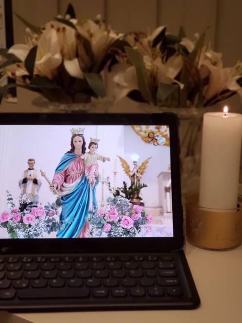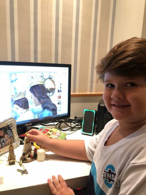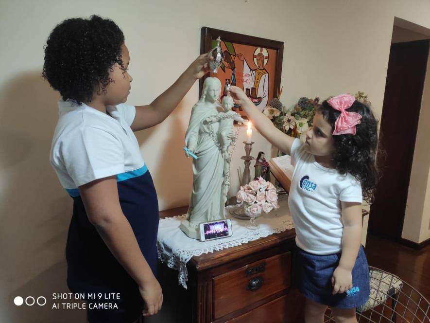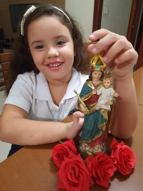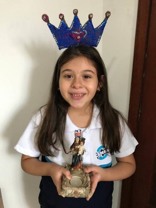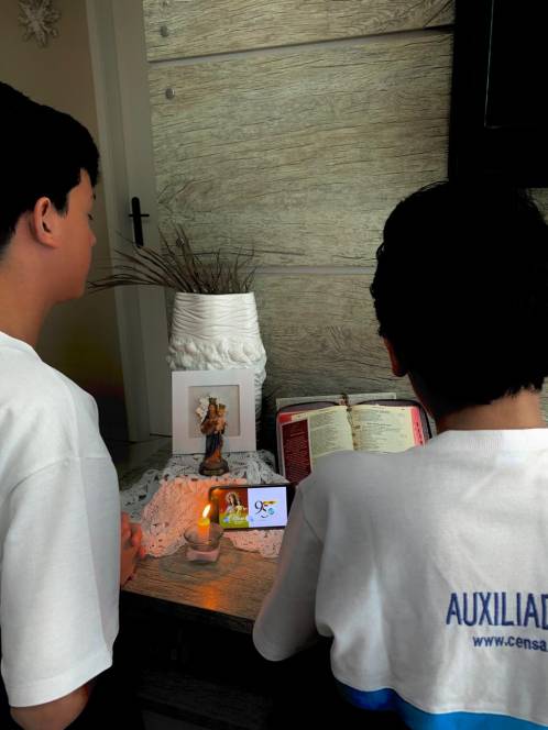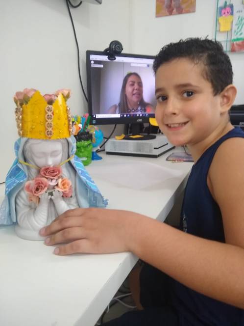Mostrando que a distância física da escola não afetou em nada a importância que dão à data e o amor à Nossa Senhora Auxiliadora, os alunos fizeram questão de registrar o momento, postando e enviando fotos de suas participações virtuais.