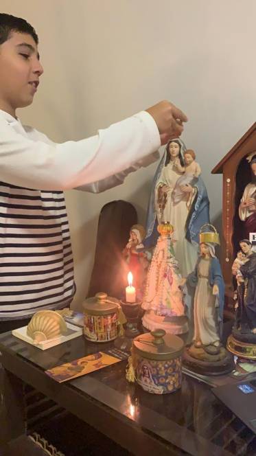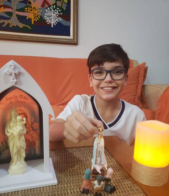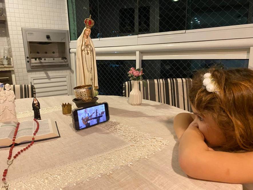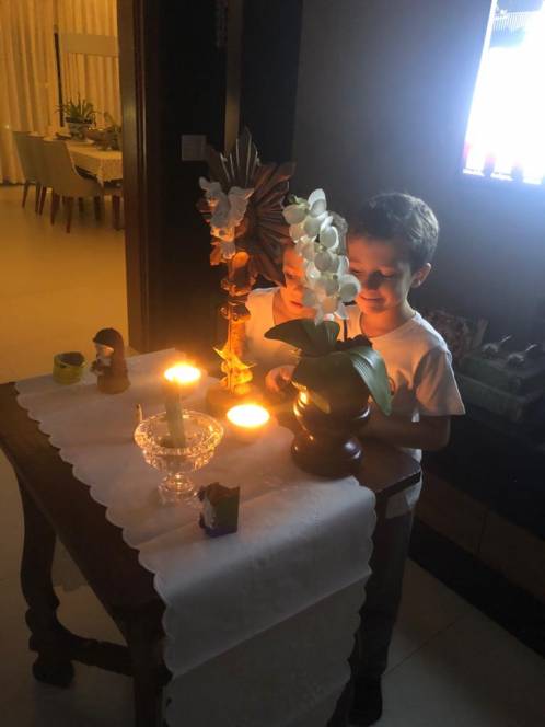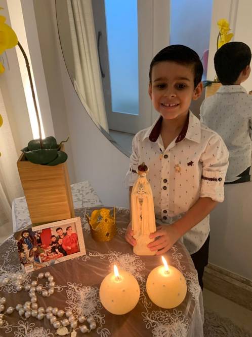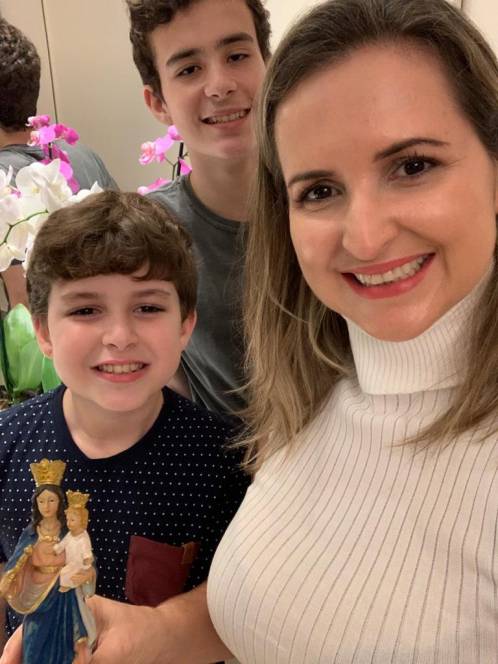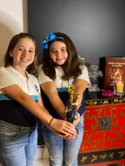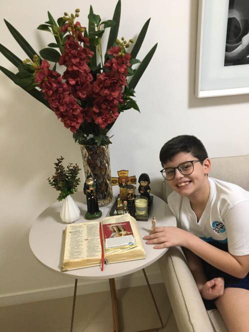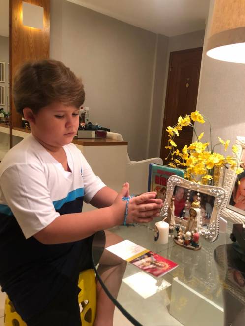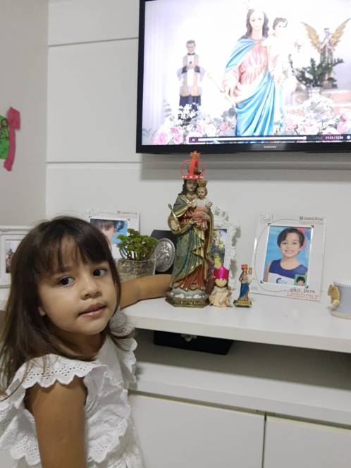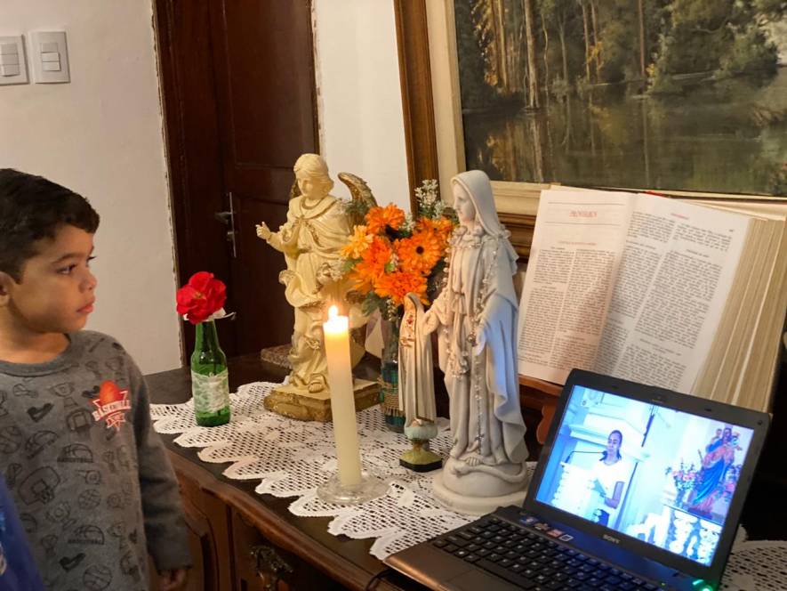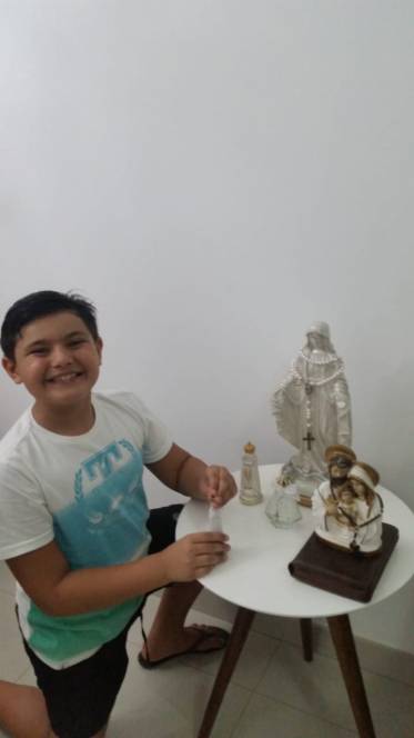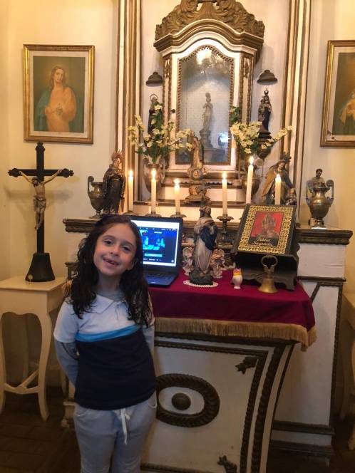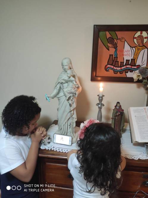 Mostrando que a distância física da escola não afetou em nada a importância que dão à data e o amor à Nossa Senhora Auxiliadora, os alunos fizeram questão de registrar o momento, postando e enviando fotos de suas participações virtuais.