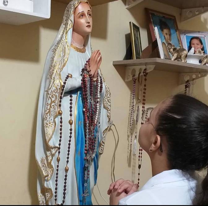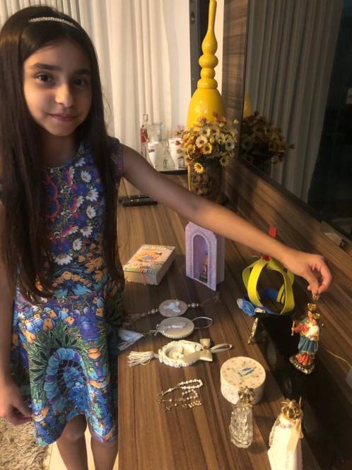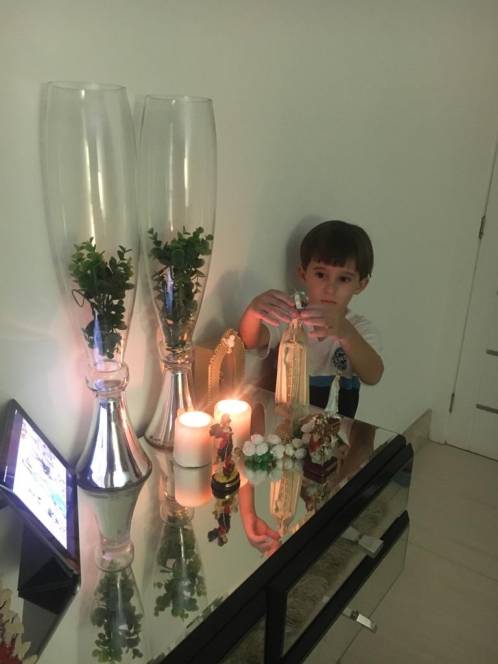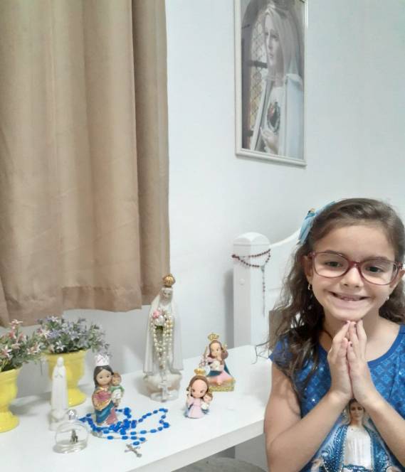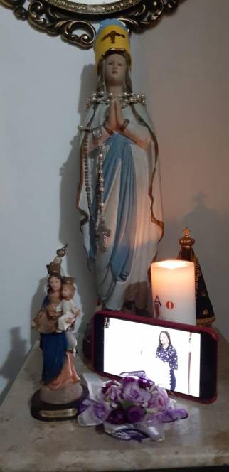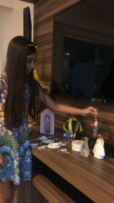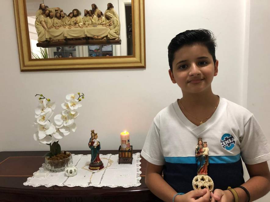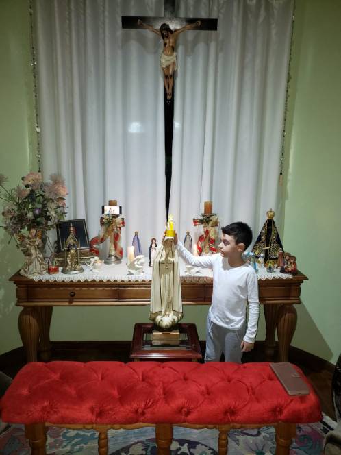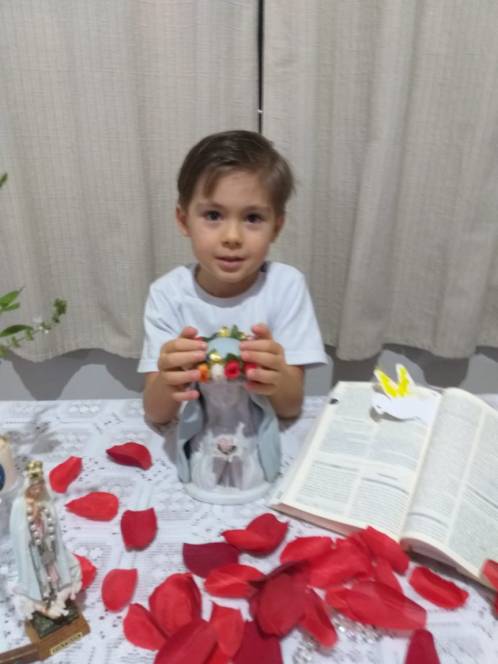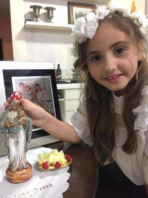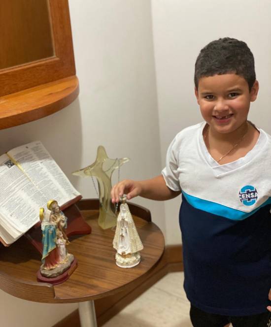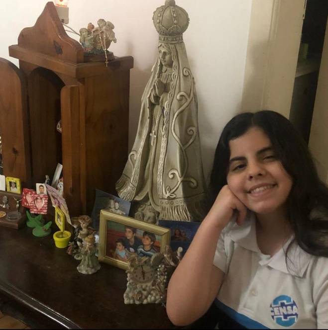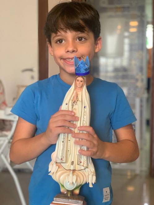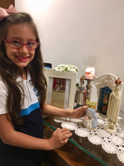 Mostrando que a distância física da escola não afetou em nada a importância que dão à data e o amor à Nossa Senhora Auxiliadora, os alunos fizeram questão de registrar o momento, postando e enviando fotos de suas participações virtuais.
