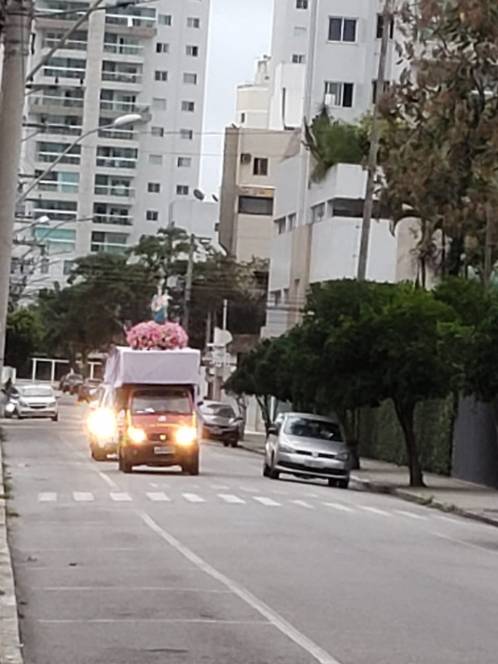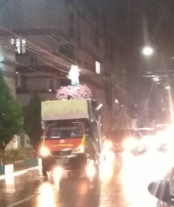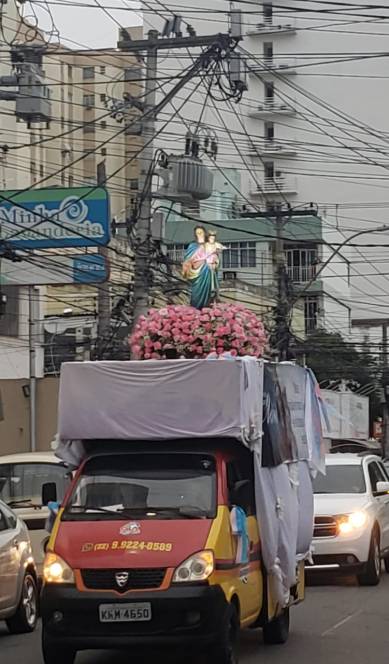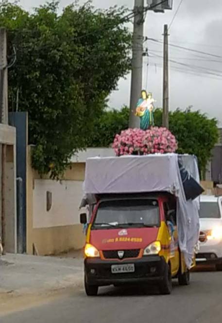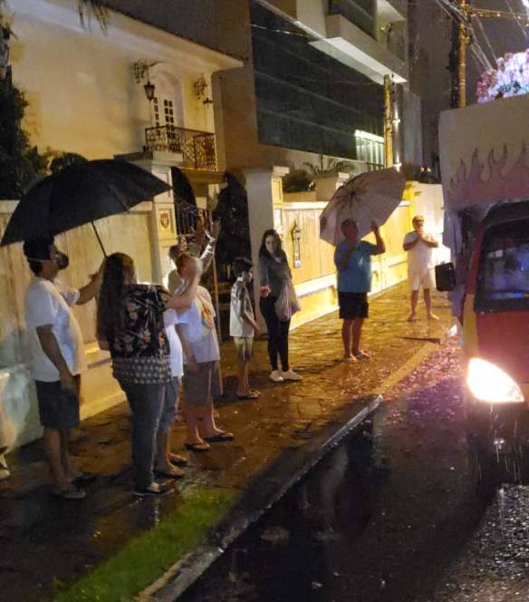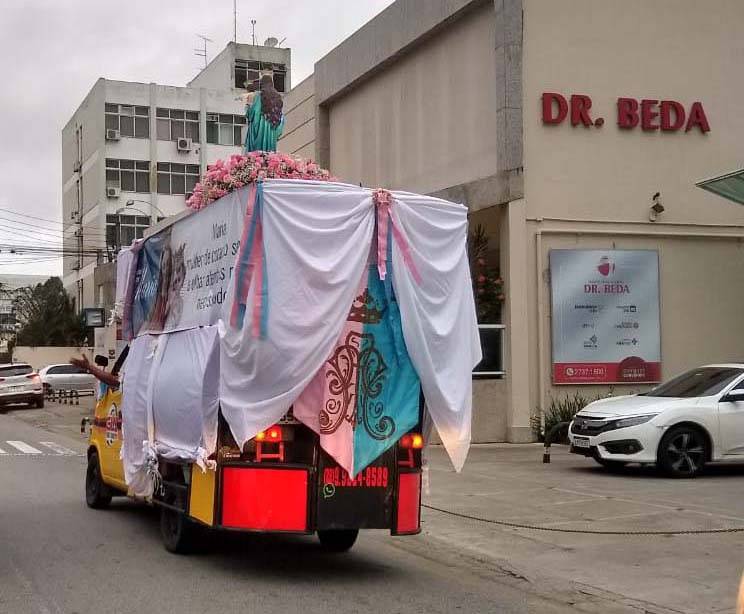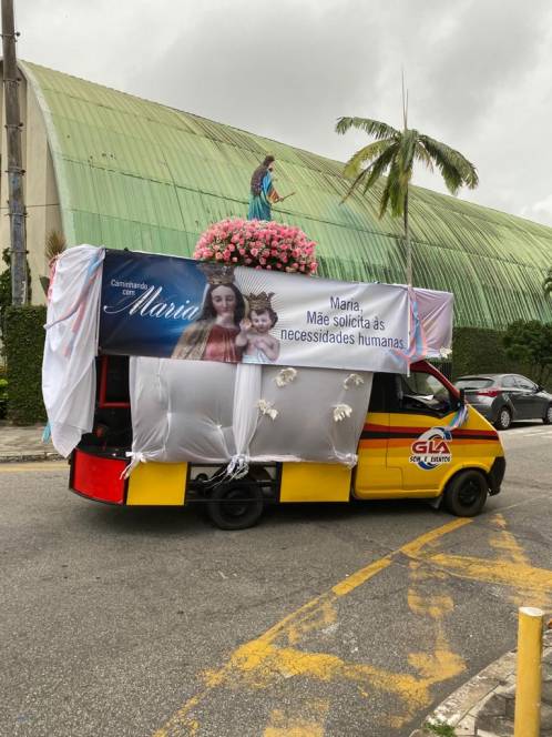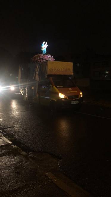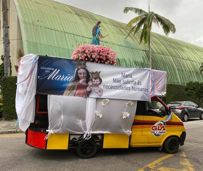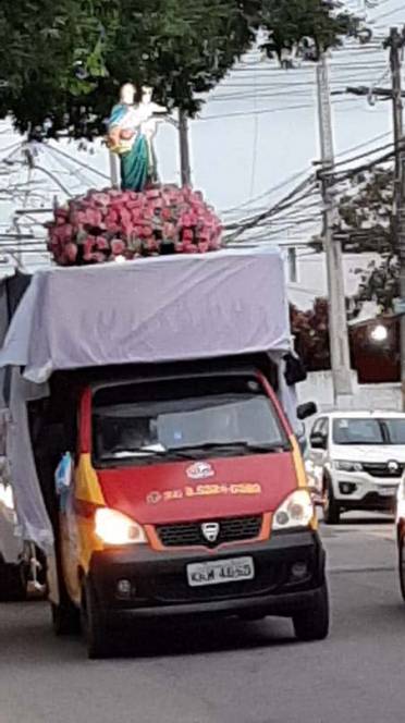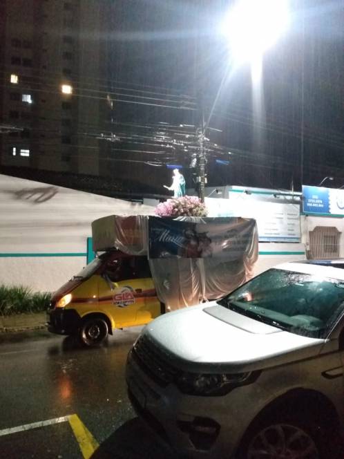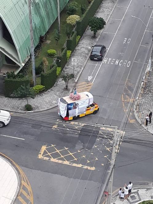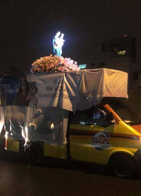 Durante cinco horas, ele transmitiu mensagens de esperança e otimismo pelos vários bairros da cidade, passando em frente aos hospitais, escolas e residências convidando para um momento de oração, súplica e homenagem à Maria. Impedidos de acompanharem de carro ou a pé, os devotos participaram das portas e janelas de suas casas, acenando com lenços brancos, acendendo velas e cantando.