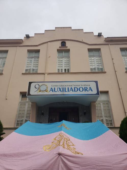 "Estamos unidos em um só coração", disse Ir. Rosa Idália Pesca, diretora geral do Auxiliadora, abrindo os portões da escola às 16 horas, para a saída do carro de som.