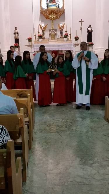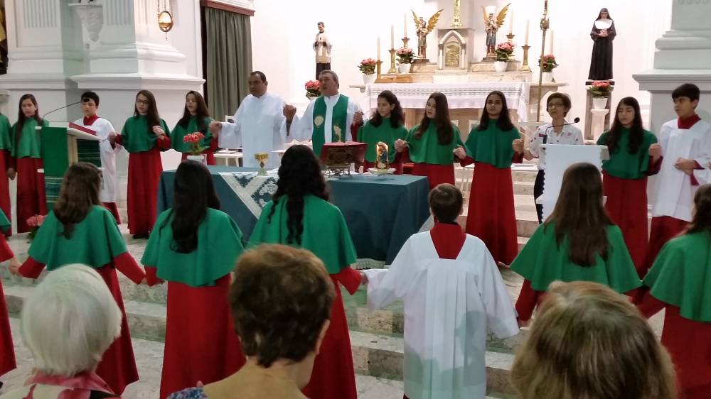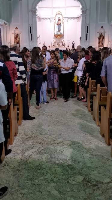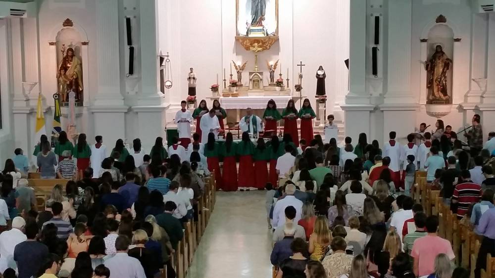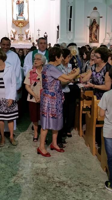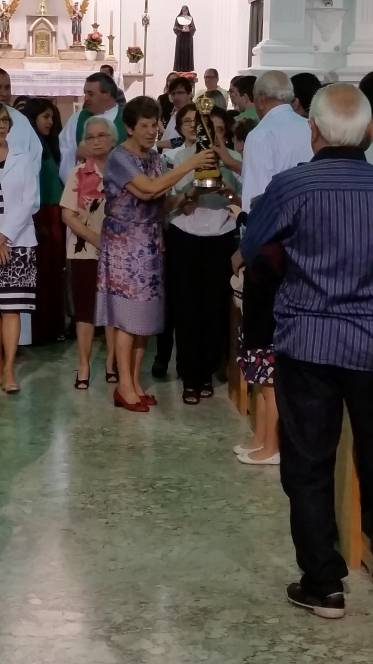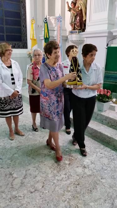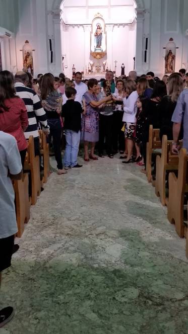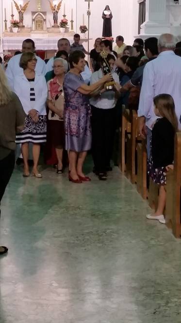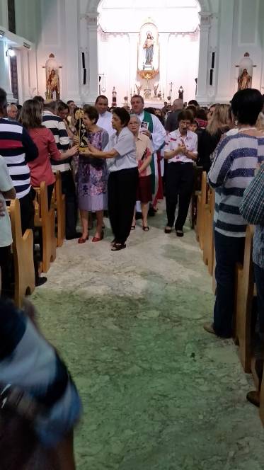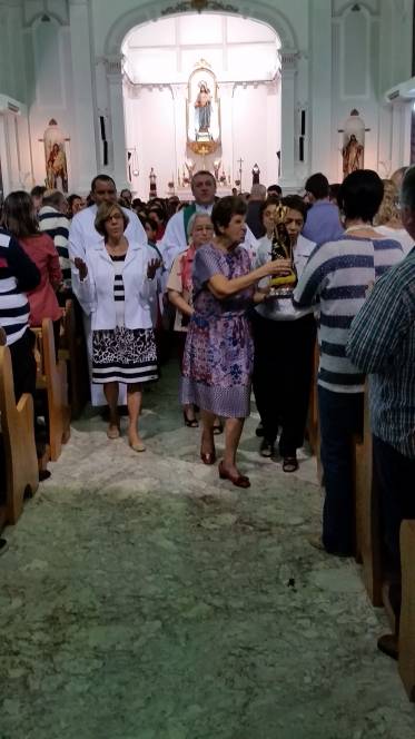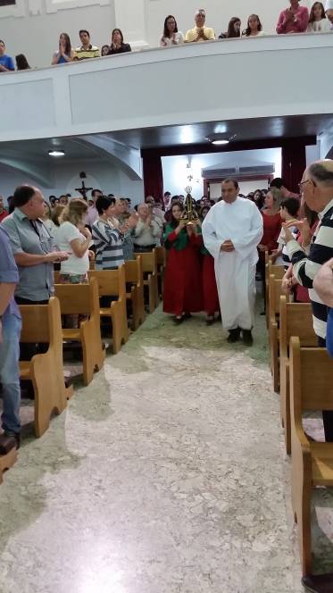Vinda do Educandário São José Operário, a imagem da padroeira chegou à escola no domingo, 12 de junho, pelas mãos de Pe. Murialdo Gasparet e o Ministro da Eucaristia, Alex Caetano. Recebida com muita emoção pela comunidade que frequenta a missa dominical no Censa e por todos os coroinhas, a imagem permaneceu durante a celebração eucarística seguindo, posteriormente para a Paróquia do Sagrado Coração de Jesus. Momento de fé e oração, rogando à Maria suas bênçãos.