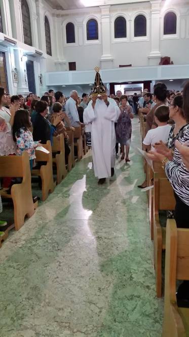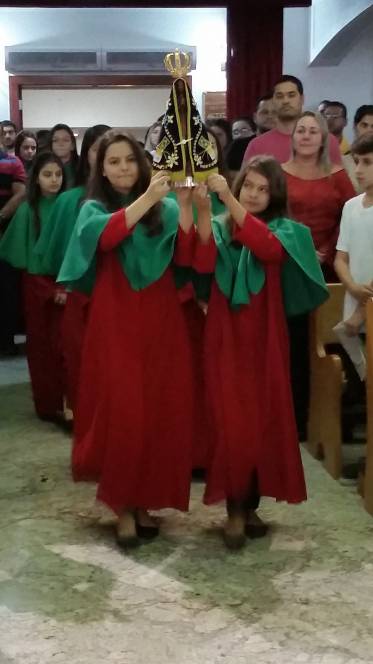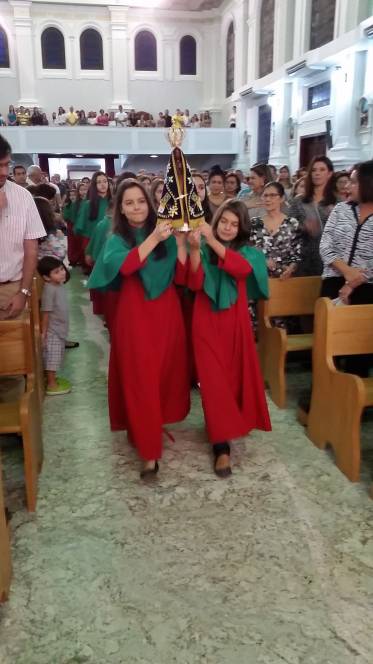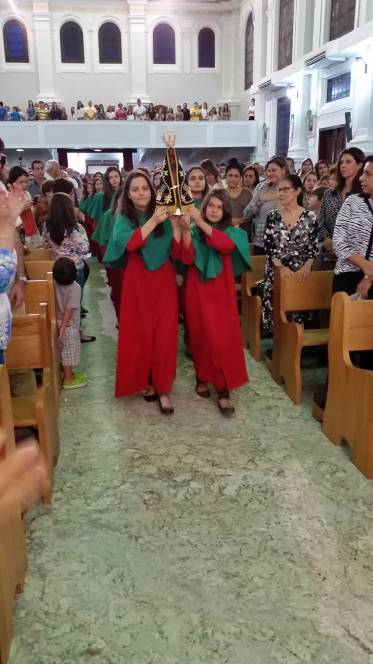 Com alegria e devoção, o Auxiliadora recebeu a imagem peregrina de Nossa Senhora Aparecida, que este ano está visitanto a diocese de nossa cidade, Campos dos Goytacazes.