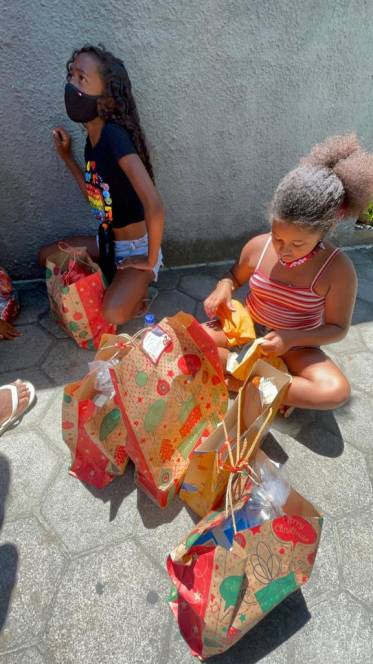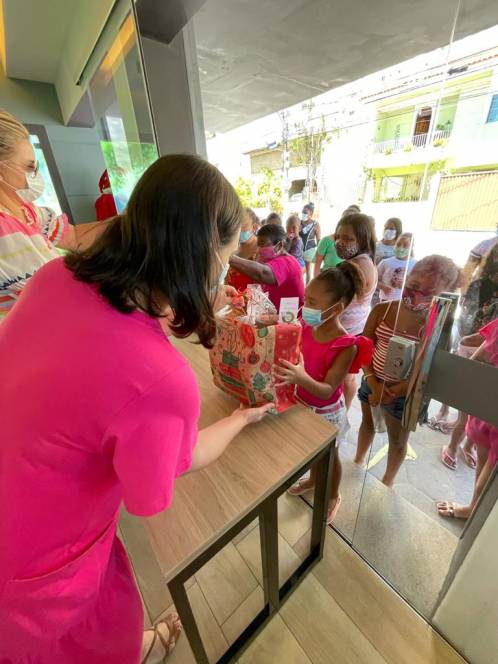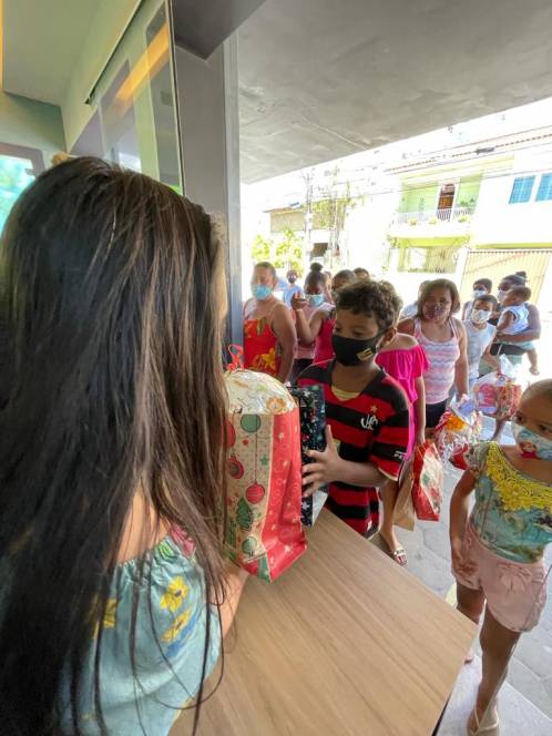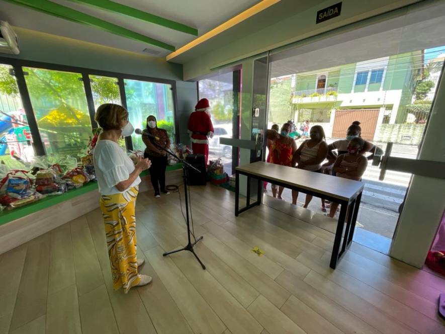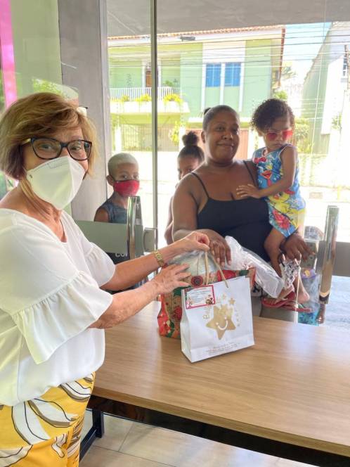 O CENSA recebeu as crianças e respectivas mães que participam do Projeto Universidade Bairro - Comunidade Tamarindo, na quarta-feira, 22 de dezembro. O encontro marcou a entrega de 28 cestas básicas, roupas e brinquedos doados pelos alunos, funcionários e professores da escola e comunidade que frequenta as missas dominicais na capela do Auxiliadora. Foi um momento de partilha e muita alegria.