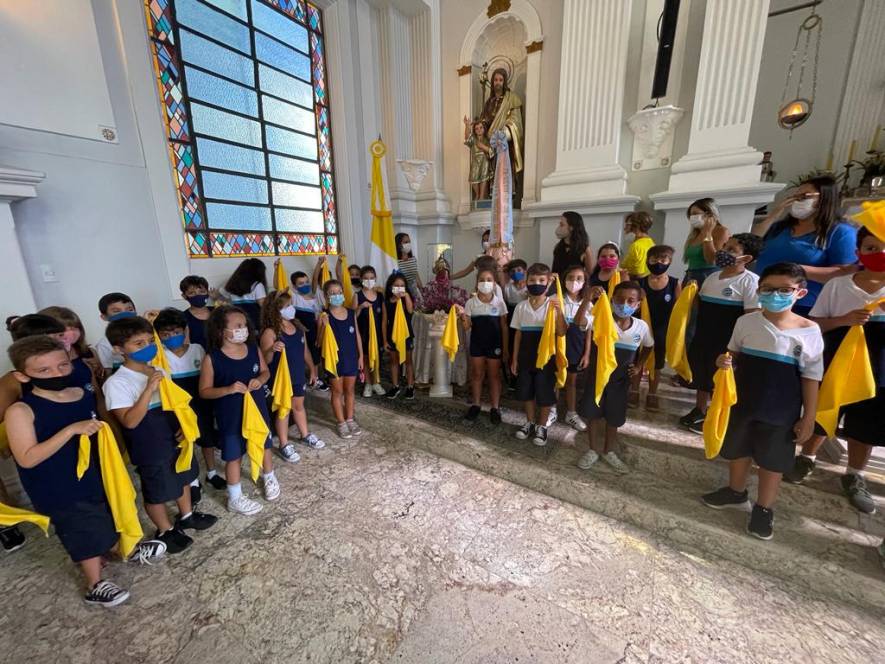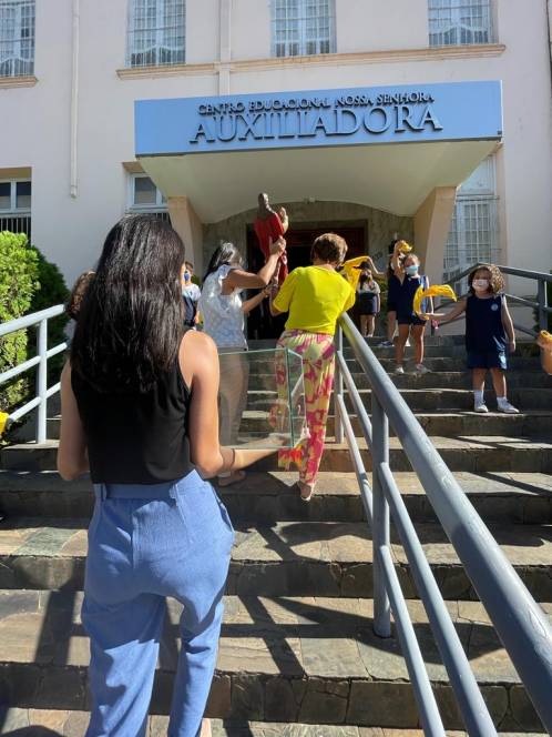O Auxiliadora recebeu a imagem do Santíssimo Salvador, padroeiro da cidade, na sexta-feira, 18 de março. A cerimônia faz parte da programação da Diocese de Campos, que este ano comemora seu centenário. A imagem peregrina, que foi recepcionada pelos alunos com uma linda acolhida, ficará na escola até a próxima terça-feira, 22, e, ao longo desse período recebe as orações e homenagens da comunidade do CENSA.