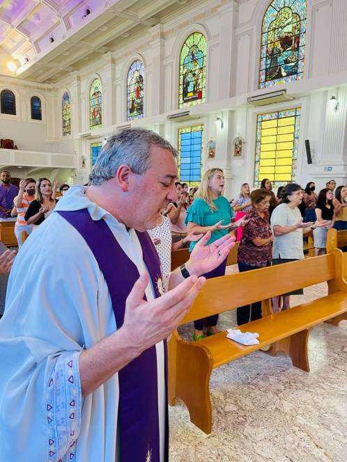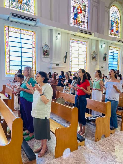 Os professores, funcionários e direção do CENSA reuniram-se na quarta-feira, 13 de abril, para celebrar a Páscoa. A celebração aconteceu na Capela da escola e relembrou momentos como a Procissão do Encontro e o Lava-pés, como exemplos de força, humildade e fraternidade, fundamentais na missão educativa.