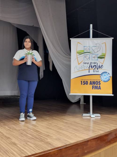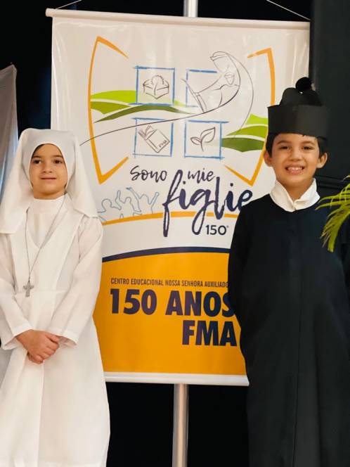 Sempre vivenciada com muita alegria pelo CENSA, a Festa da Gratidão desse ano teve um motivo a mais para celebrar: o 150º aniversário do Instituto das Filhas de Maria Auxiliadora. A data foi comemorada ao longo de 3 semanas, por todos os segmentos da escola. Acolhidas diárias pelo som, celebrações na Capela, orações, exposição de desenhos criados pelos alunos, homenagens à Madre Geral Chiara Cazzuola, às Irmãs Salesianas e também aos leigos, que dão continuidade ao trabalho educativo pregado por Dom Bosco e Madre Mazzarello.