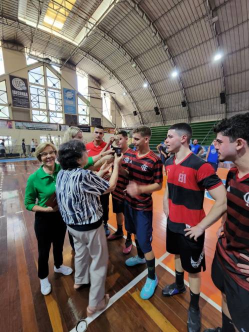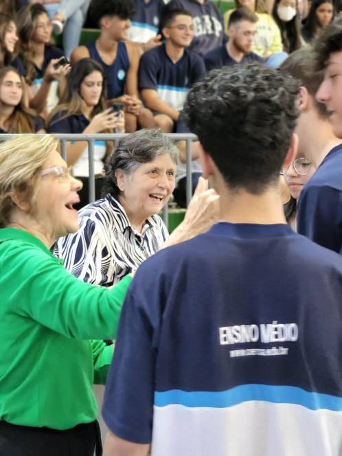 2022 é um ano muito especial para o CENSA. Afinal, o Instituto das Filhas de Maria Auxiliadora completa seu 150º aniversário de fundação. Embora as comemorações estejam acontecendo desde março, a escola intensificou a programação em agosto, data oficial do aniversário. Dia 4, o fundamental I participou da Gincana Salesiana, com provas de raciocínio e agilidade, que tinham como tema os 150 anos. A turma 802 foi a que mais pontuou e levou o troféu, muito comemorado pelos alunos. No final da manhã, o Ensino Médio vibrou com o amistoso de futsal entre professores e formandos do 3º ano. A torcida fez vibrar as arquibancadas, com gritos de ordem e muita batucada. O placar fechou em 5x2 para os alunos que receberam o troféu pelas mãos da diretora geral Ir. Rosa Idalia Pesca, da vice, Beth Landim, e da diretora acadêmica Ir. Luzia Carvalho.