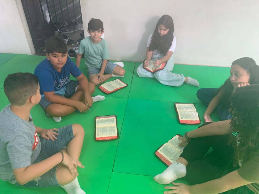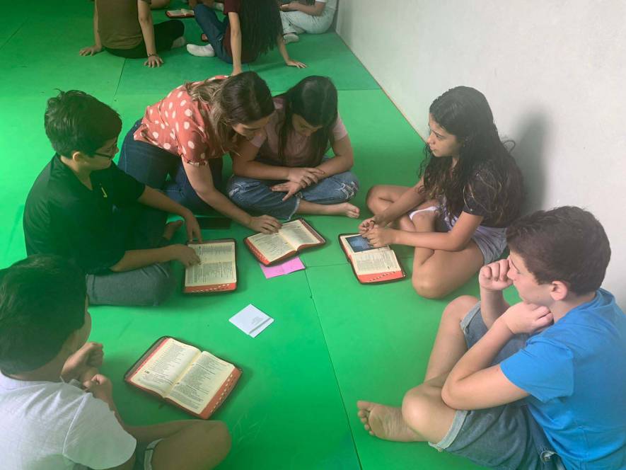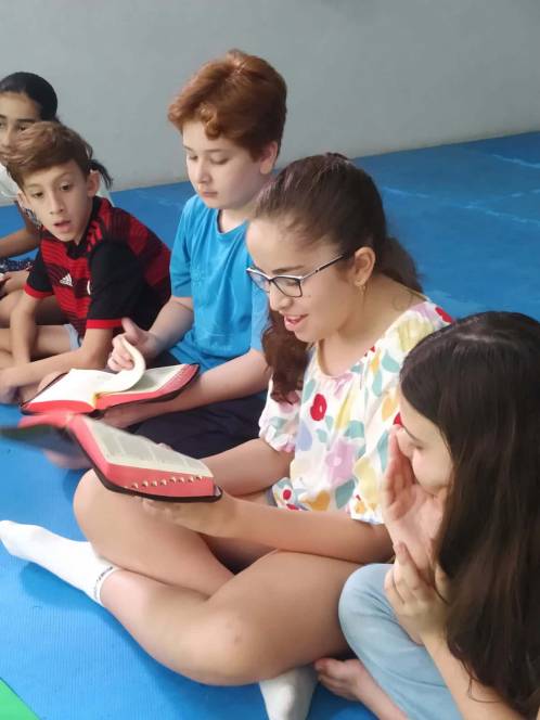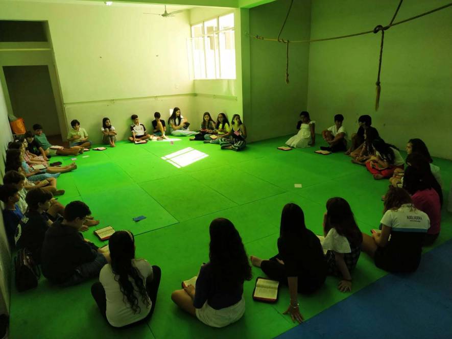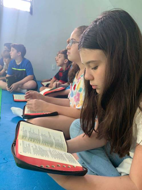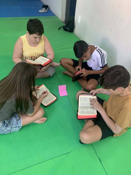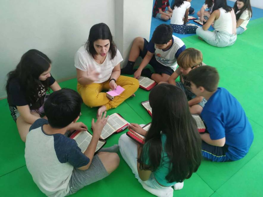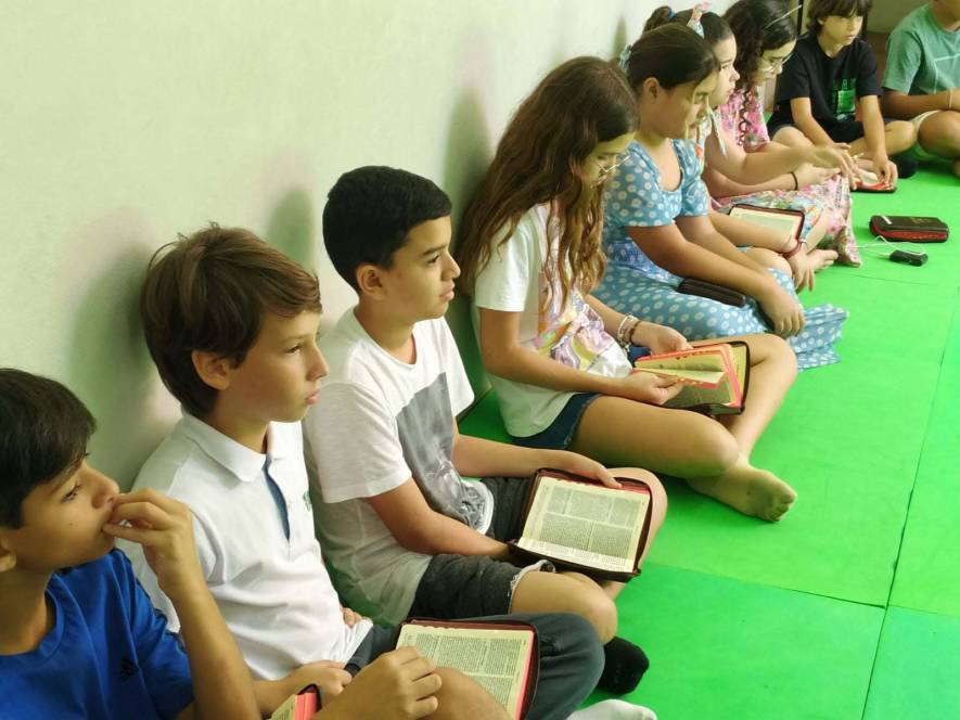 Concluindo uma intensa preparação para a Primeira Eucaristia, os 80 alunos que receberam o sacramento no sábado, 22/10, participaram de um retiro espiritual. Durante 3 dias, de 19 a 21 de outubro, o grupo se reuniu para orações, dinâmicas e brincadeiras na escola, preparando-se para o grande dia.