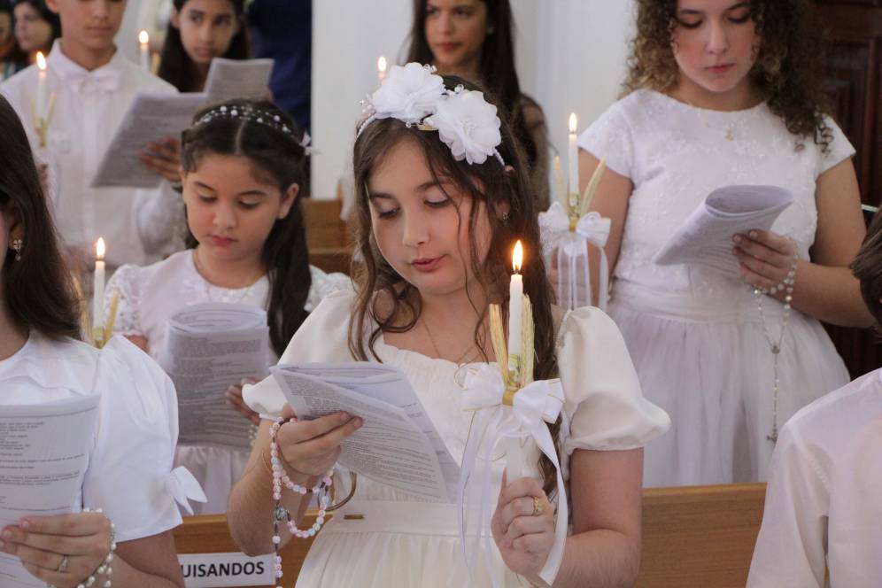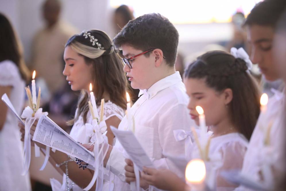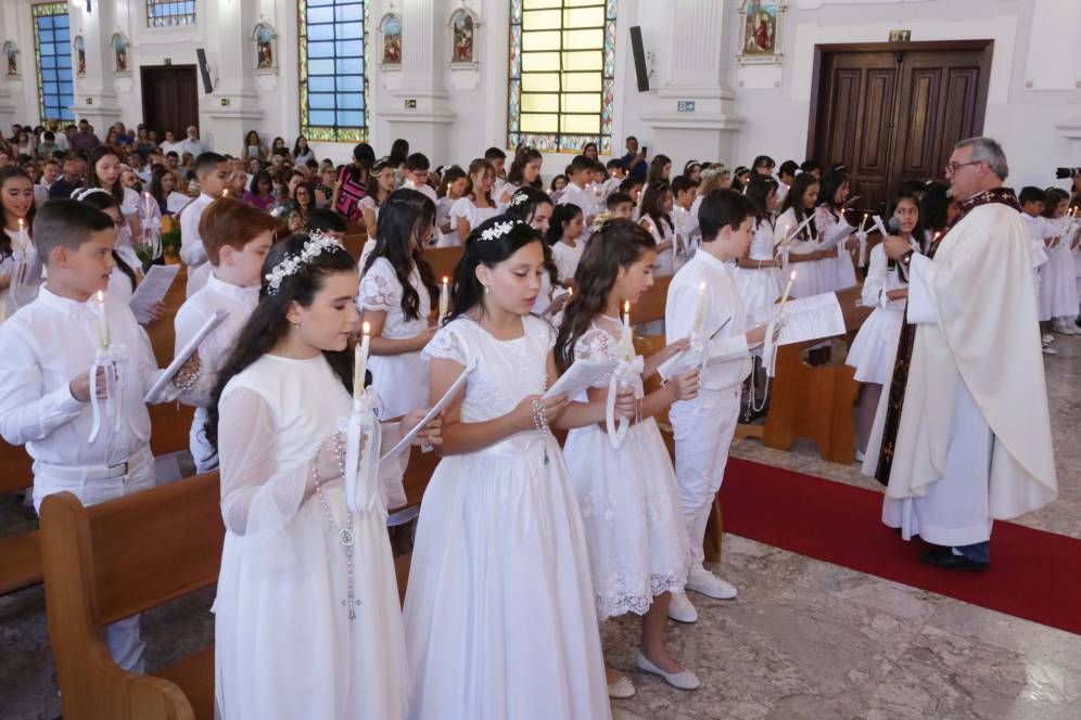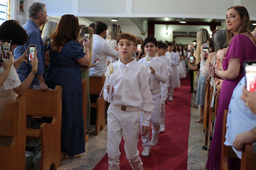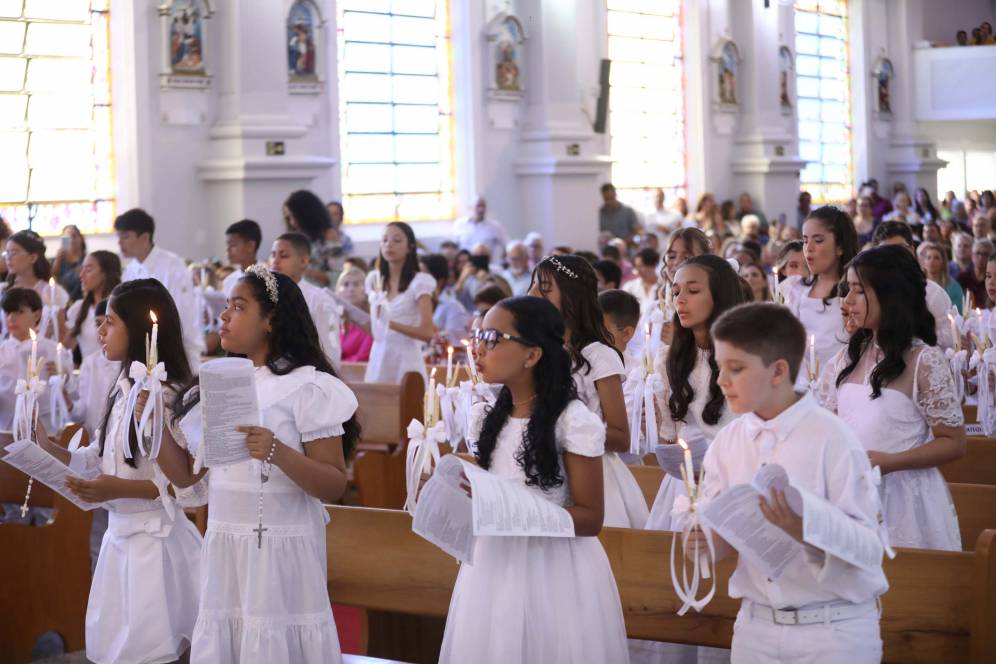 Após uma intensa preparação, finalmente chegou o grande dia! No sábado, 22 de outubro, 80 catequizandos do CENSA receberam a Primeira Eucaristia, numa bela celebração presidida por Pe. Murialdo Gasparet. Amigos e familiares participaram do momento, testemunhando o crescimento espiritual dos alunos.
