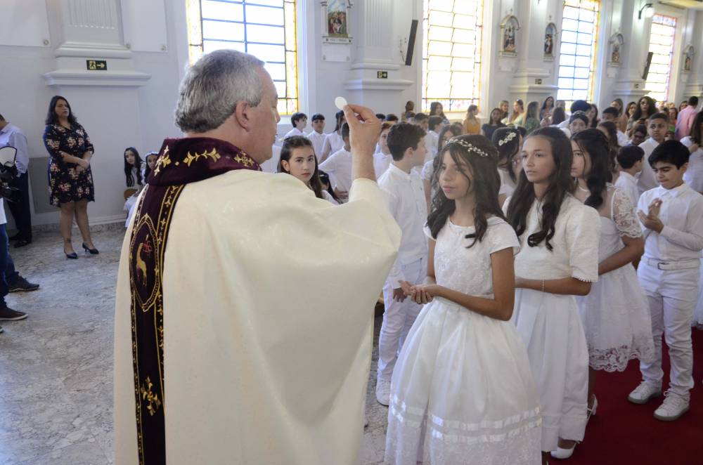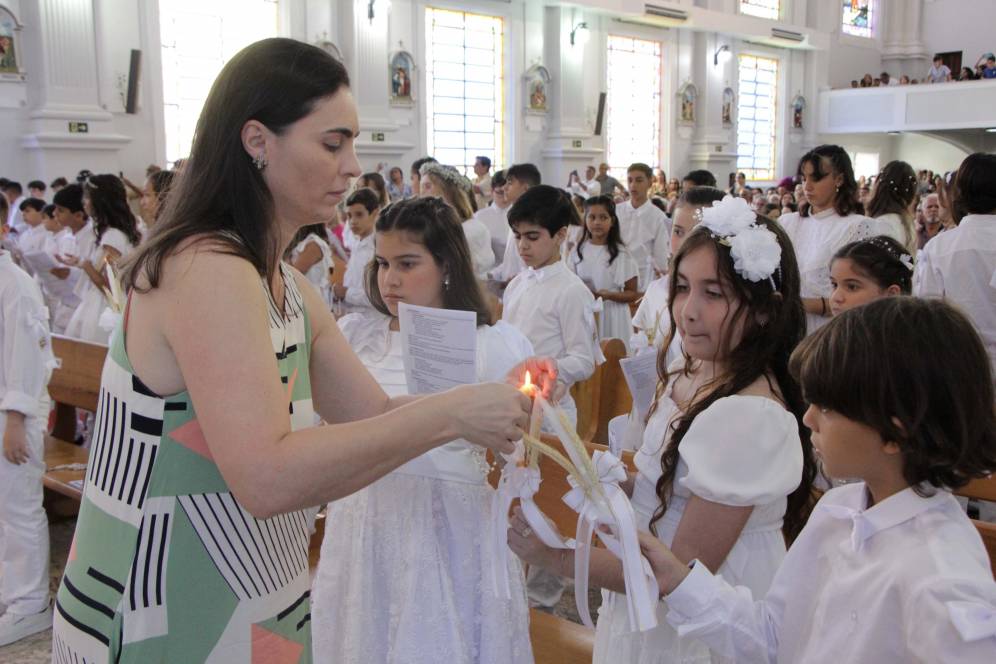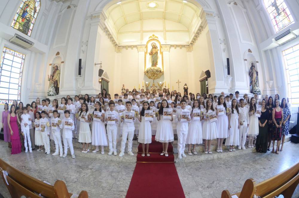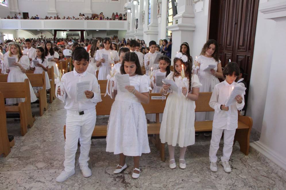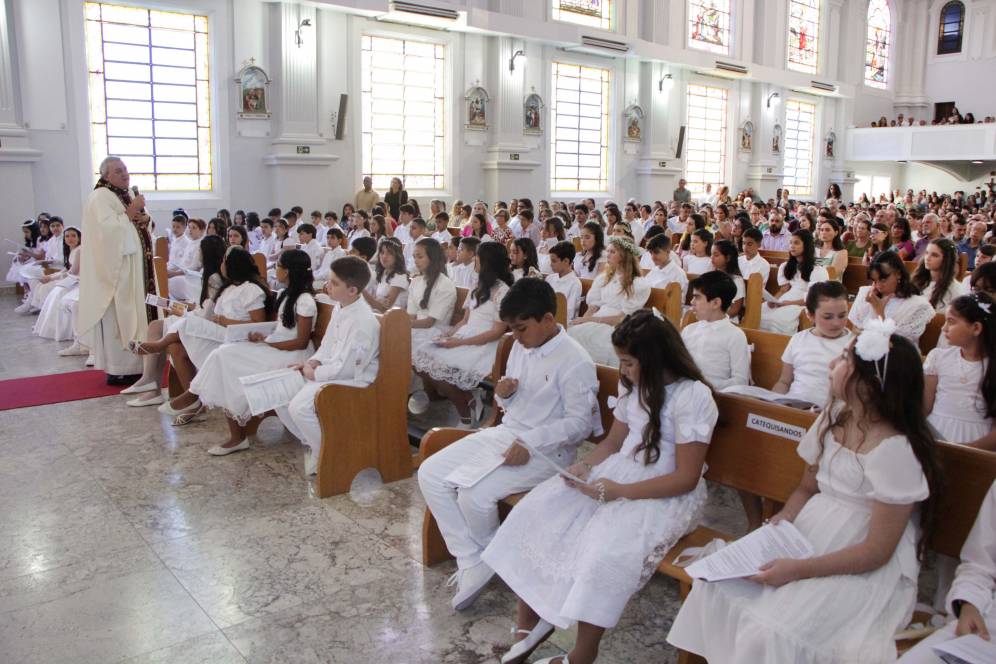 Após uma intensa preparação, finalmente chegou o grande dia! No sábado, 22 de outubro, 80 catequizandos do CENSA receberam a Primeira Eucaristia, numa bela celebração presidida por Pe. Murialdo Gasparet. Amigos e familiares participaram do momento, testemunhando o crescimento espiritual dos alunos.