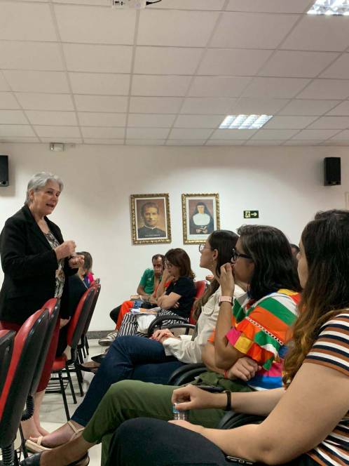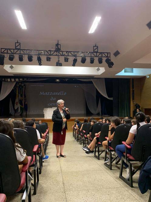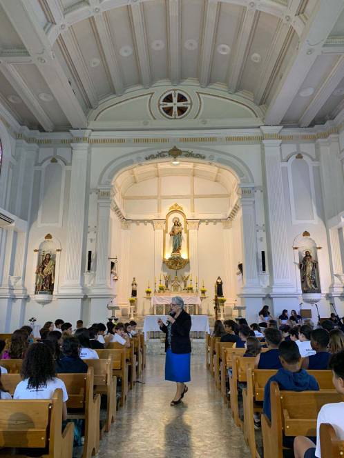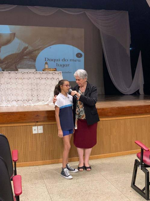 O CENSA e o ISECENSA receberam a visita da Ir. Teresinha Ambrosim, entre os dias 9 e 12 de maio. Responsável provincial de cinco estados e do Distrito Federal, Ir. Teresinha esteve com todos os segmentos das instituições, trazendo reflexões sobre o tema da Estreia 2023, "Como fermento, na família humana hoje", e inteirando-se das novidades e conquistas da comunidade educativa. Na quinta-feira, 11 de maio, participou da inauguração da Capelinha Maim, novo espaço de oração do CENSA/ISE. "É sempre uma alegria receber Ir. Teresinha, com sua presença afetuosa e marcante", disse a vice-diretora Beth Landim.