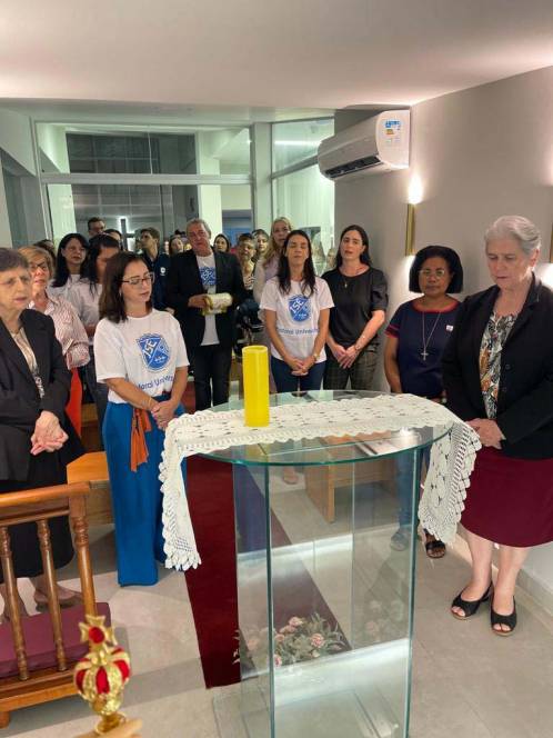 O CENSA e o ISECENSA inauguraram mais um espaço de oração. Carinhosamente chamada de Capelinha Main, apelido de Madre Mazzarello, o local foi oficialmente entregue à comunidade educativa na noite de quinta-feira, 11/05. Além da direção, coordenação e equipe da Pastoral Universitária, a cerimônia contou com a presença especial da Inspetora Geral da IMM, Ir. Teresinha Ambrosim. Pe. Murialdo Gasparet, autor da ideia em criar o local, abençoou a Capelinha, desejando que a mesma seja "um lugar de agradecimento, de repouso da alma".