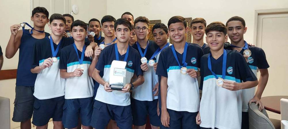 É campeão! Após uma campanha impecável, o futsal sub 15 do CENSA trouxe para casa o troféu do Intercolegial 2023. A final aconteceu no sábado, 10/06, no Sesc Nova Iguaçu, com os atletas do Auxiliadora enfrentando o SEICE e fechando com o placar de 4x2. Cheio de energia, o time entrou em quadra com invejável disposição, mesmo após enfrentar uma viagem de 300km.