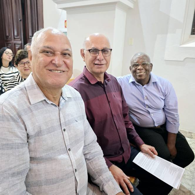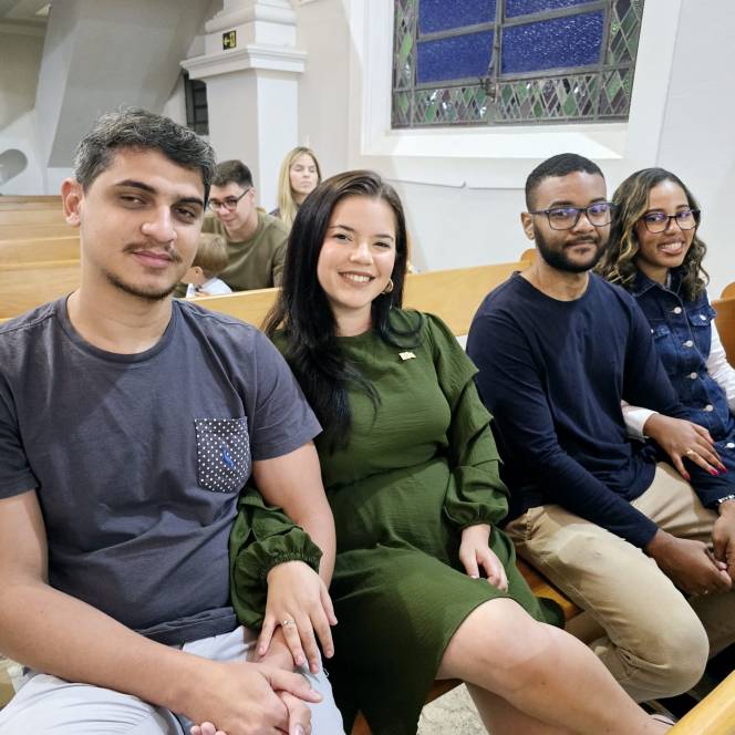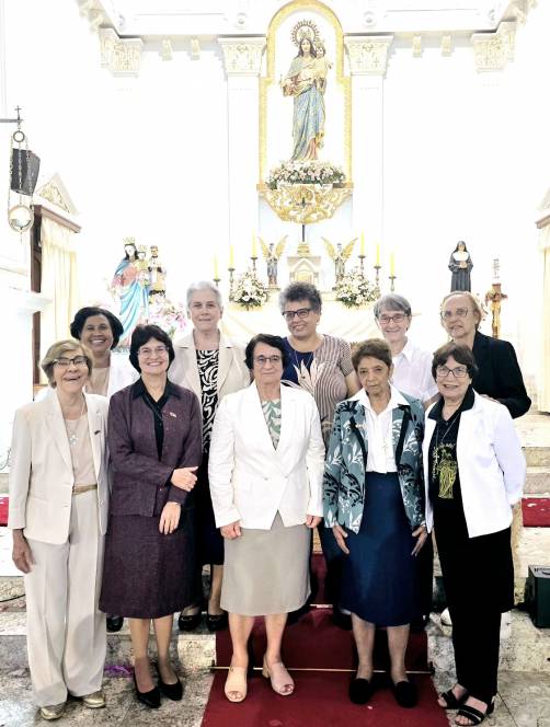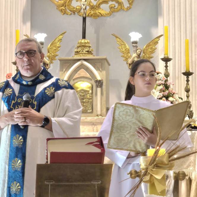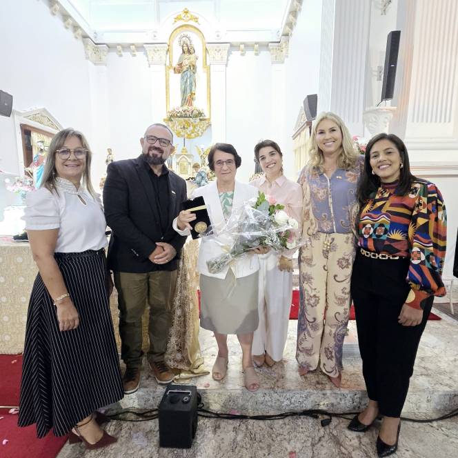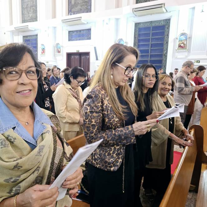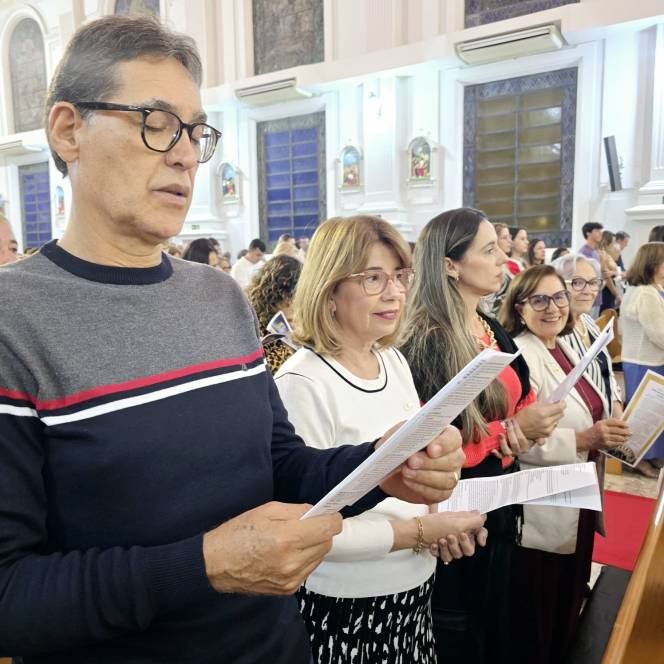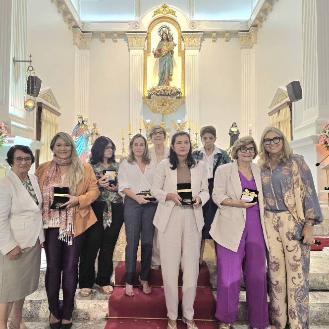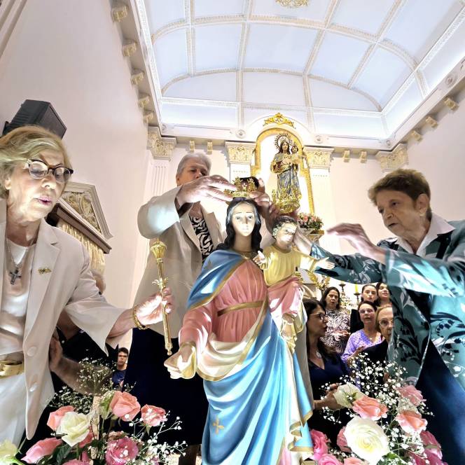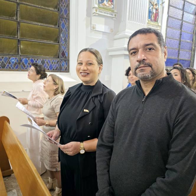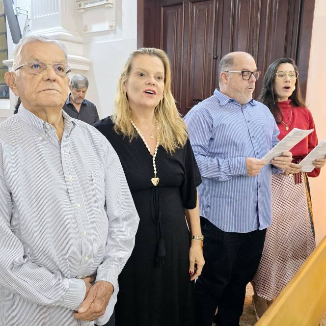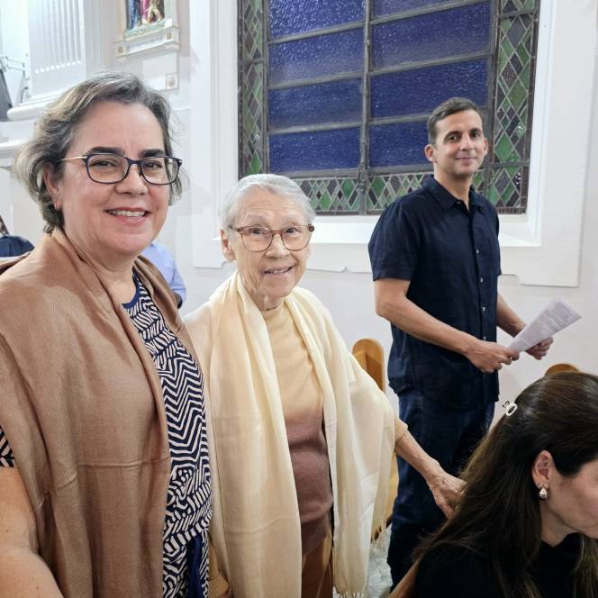 O CENSA realizou uma Missa em Ação de Graças pelo seu centenário, no sábado, 24 de maio. Além das Irmãs e do corpo docente e administrativo da casa, a celebração reuniu, também, ex-alunos, ex-professores, ex- funcionários e os presidentes da APPCENSA e da UESC ao longo desses anos. A coroação de Nossa Senhora, habitualmente realizada por alunos, desta vez teve à frente a Inspetora Ir. Teresinha Ambrosim, a diretora geral. Ir. Ana Teresa Pinto, a diretora acadêmica Ir. Luzia Alves de Carvalho e a tesoureira Ir. Aparecida Ferreira que, ao final, comandaram um vigoroso coral do hino das FMA, "Oh Qual Sorte!" A noite contou ainda com homenagens àqueles que fizeram e fazem parte dessa casa, dedicando seu trabalho e amor à missão salesiana. Muita emoção, reencontros e gratidão. Que venham mais 100 anos!