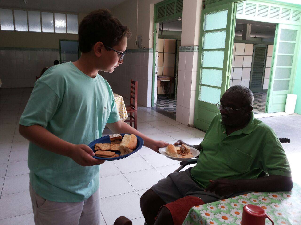 A programação iniciou-se com o violão da profª. Josiane Landim que, com sua música, animou o ambiente e colocou todos para cantar e dançar. Após um momento de oração, as crianças serviram o lanche, com bolo, pães e sucos, e puderam interagir com os moradores da instituição conhecendo-se mutuamente. Muito felizes, os idosos fizeram questão de registrar a visita tirando muitas fotos com as crianças.