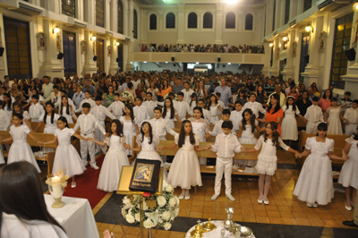 No dia 14 de setembro/13, 68 crianças receberam sua primeira comunhão, momento de fé e alegria. Parabéns! Que Jesus Eucarístico alimente seu coração na fé e no amor!