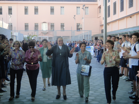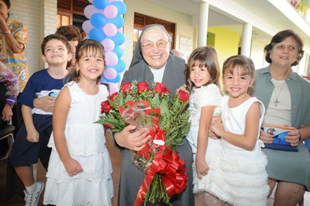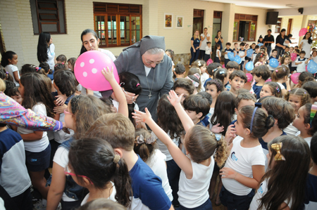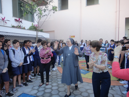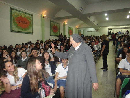 Com alegria, o Auxiliadora/Campos recebeu, dia 22 de agosto/13, Ir. Yvonne Reoungoat, Madre Geral do Instituto das FMA e 9ª sucessora de Madre Mazzarello. Foi um dia de intensa atividade, com visitas aos vários departamentos da instituição, homenagens e encontros com professores, alunos e Irmãs.