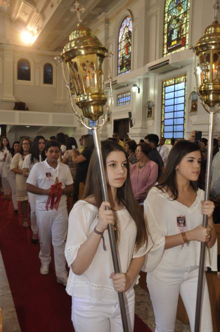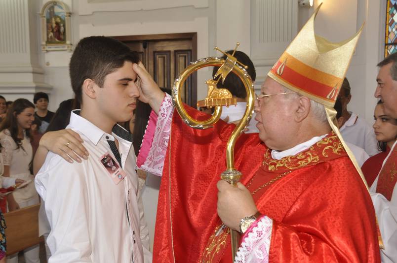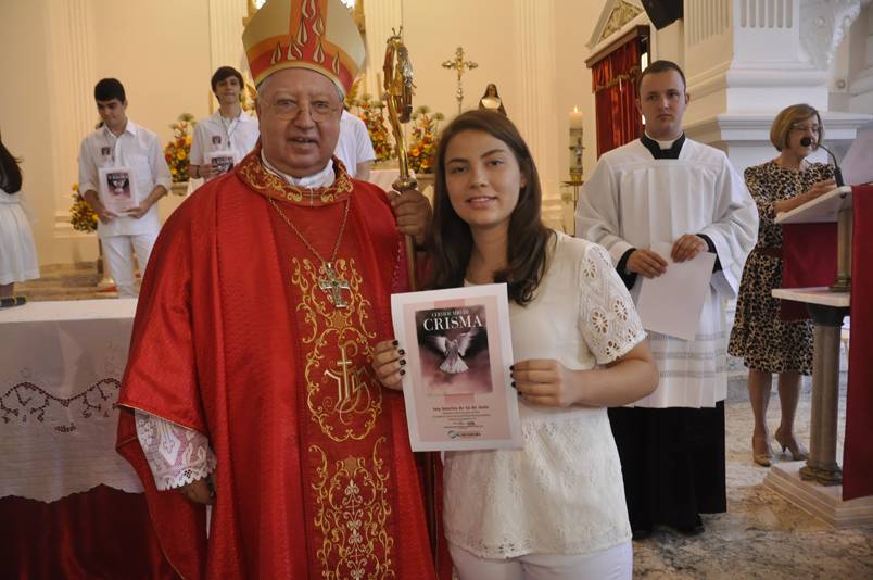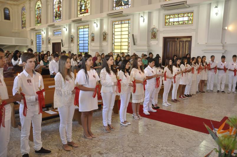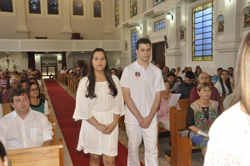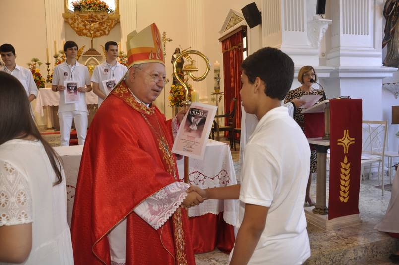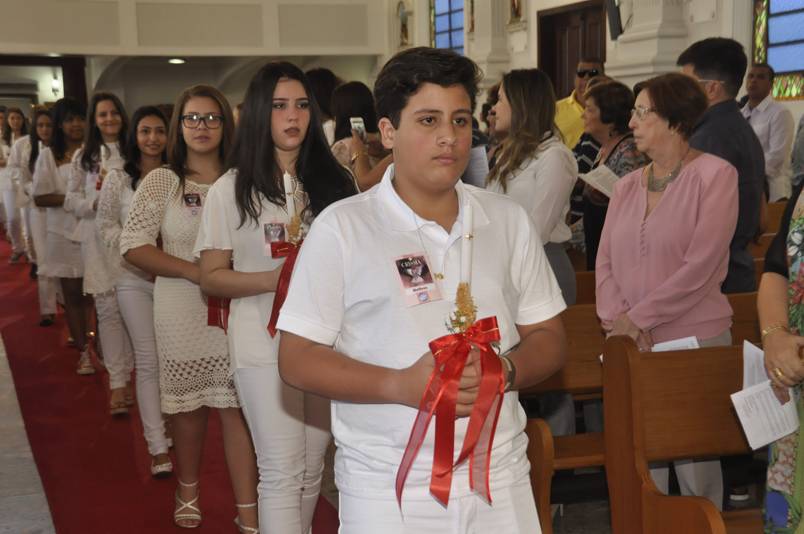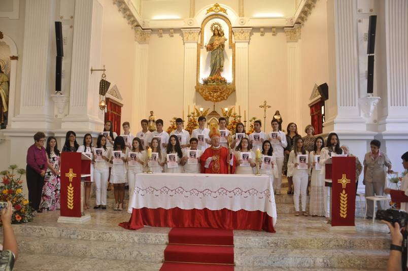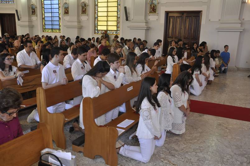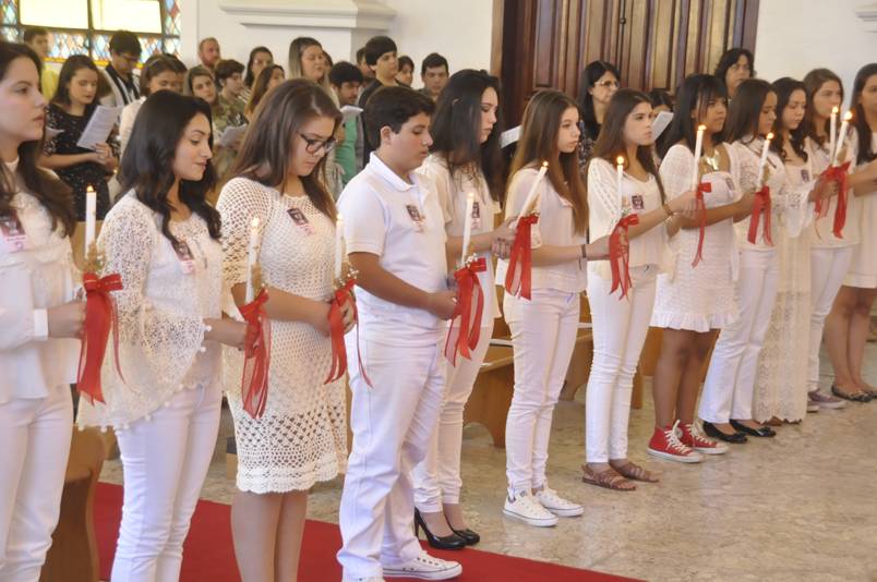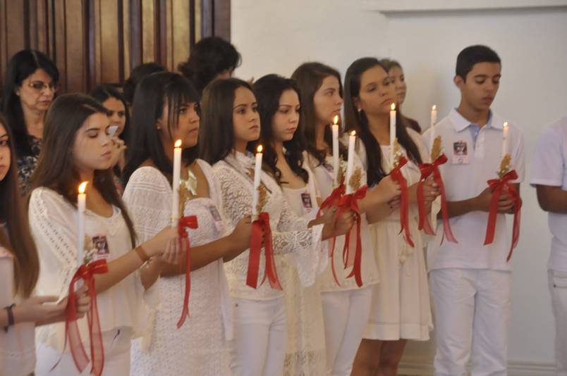 Vinte e dois alunos do CENSA receberam, no domingo, 28 de agosto, o sacramento da Crisma. Desde o início do ano, esses jovens se preparam mais profundamente através de reflexões, estudos, retiro e confissão para o dia da confirmação do seu compromisso com a Palavra de Deus. O grande momento, que aconteceu na Capela da escola, com a presença de amigos, familiares, catequistas e Irmãs, foi presidido pelo bispo Dom Roberto Francisco Ferrería Paz e cocelebrado por Pe. Murialdo Gasparet.