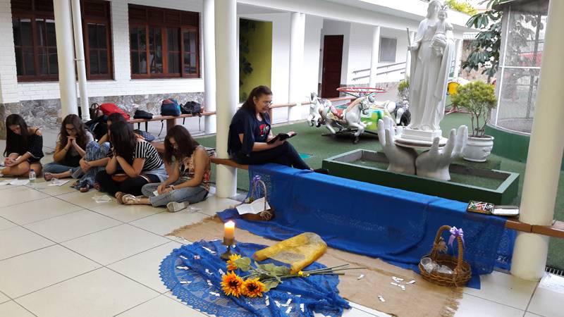 Dando continuidade à preparação para a Jornada de Espiritualidade Juvenil Salesiana, que acontecerá em Macáe, no próximo dia 9 de outubro, os alunos do Auxiliadora que participarão do encontro se reuniram na sexta, dia 7 de outubro. Sob o tema "Conduzidos pelo Espírito Santo", os alunos vivenciaram momentos de escuta, reflexão e oração sobre a Palavra de Deus.