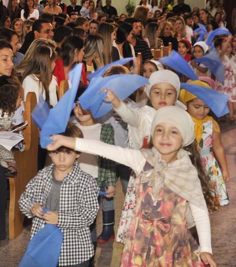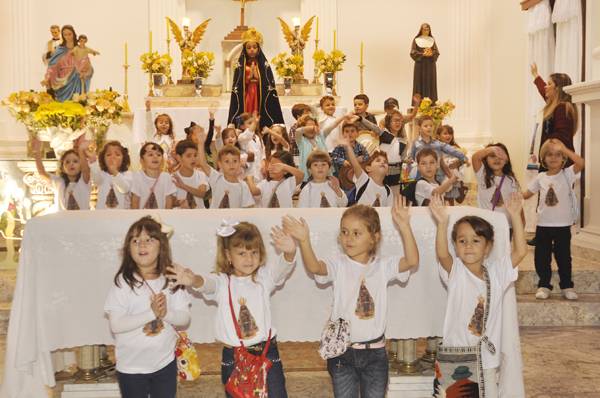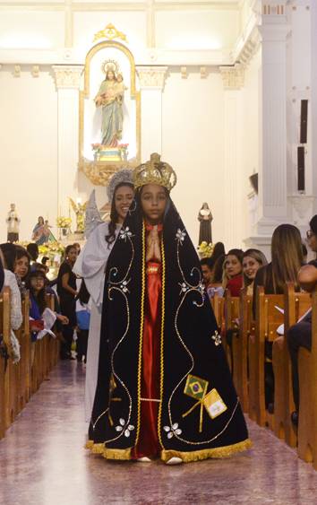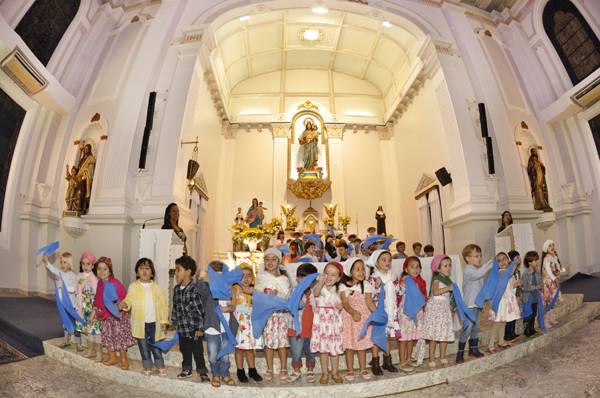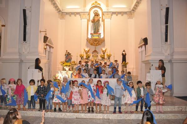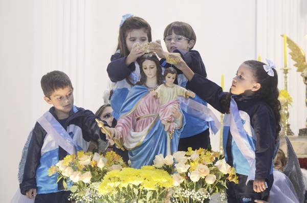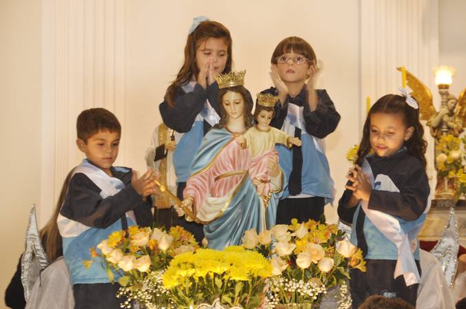 No último dia da Novena de Maria, os pequenos da Escola Infantil e 1º ano do Ensino Fundamental homenagearam a "Mãezinha do Céu", em 24 de maio. Com uma celebração marcada pela alegria, os alunos reviveram a história de Nossa Senhora Aparecida, padroeira do Brasil, que este ano comemora 300 anos de aparição, apresentando os pescadores, os milagres a ela atribuídos e os romeiros em caminhada ao Santuário. Ao final, as famílias se juntaram aos alunos e, emocionados, coroaram Nossa Senhora Auxiliadora, a Mãe de Deus e Rainha da Paz.