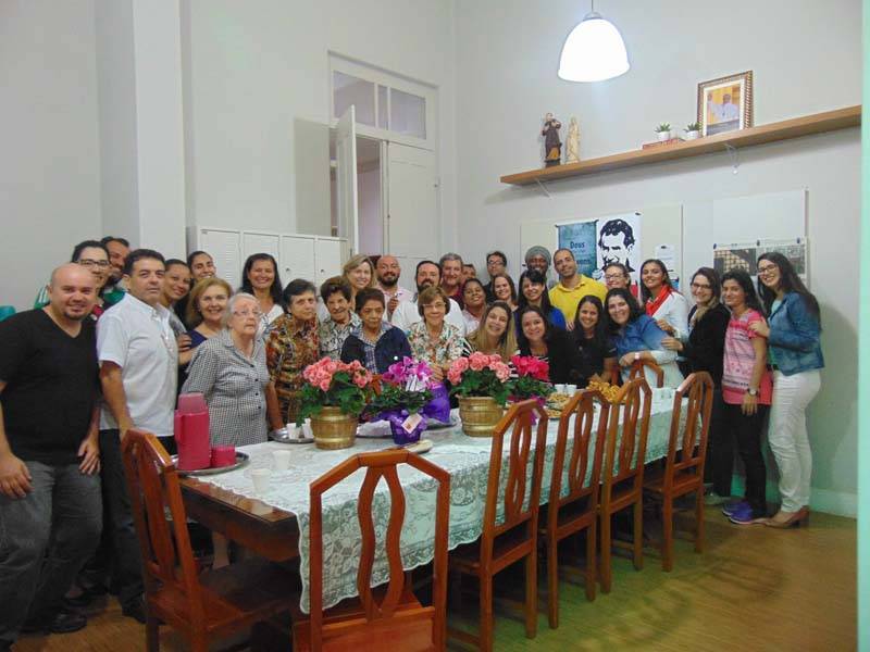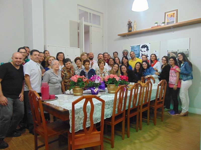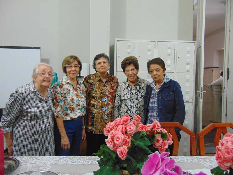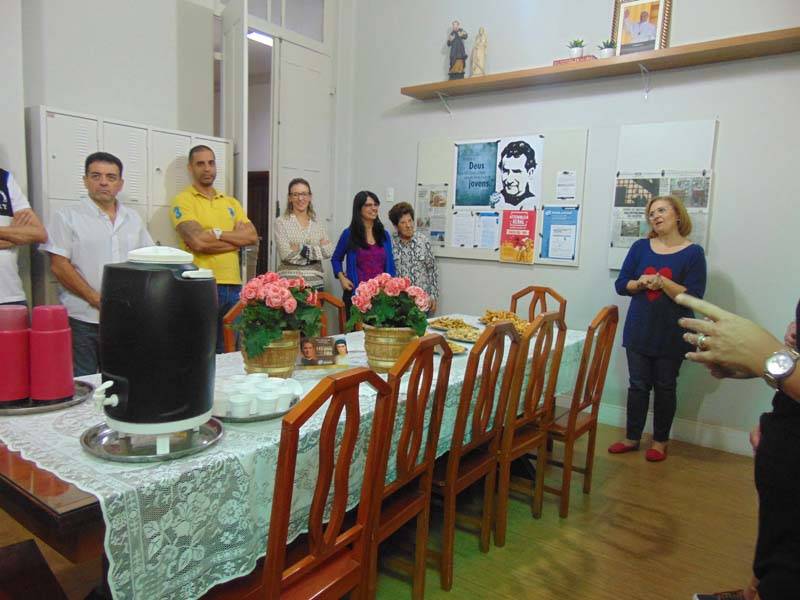 Comemorando a fundação do Instituto das Filhas de Maria Auxiliadora, que completa 145 anos no sábado, 5 de agosto, a comunidade do CENSA se reuniu na véspera para homenagear aquelas que dedicaram suas vidas à serviço dos jovens. Representando as FMA, as Irmãs Rosa Idália Pesca, Suraya Chaloub, Aparecida Ferreira, Luzia Carvalho, Giuliana Arcebis e Emília Arruda receberam o carinho e o reconhecimento dos professores e funcionários da casa. Partilhando um gostoso lanche, receberam flores e retribuíram entoando o hino do Instituto, "Oh qual sorte", que sempre encanta a todos.