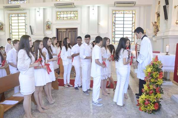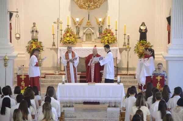 Domingo, 24 de setembro, foi um dia especial para 28 jovens do CENSA e ISECENSA. Em uma Missa celebrada pelo Bispo Diocesano Dom Roberto Ferreira Paz e co-celebrada por Padre Murialdo Gasparet, o grupo recebeu o sacramento da Crisma. Confirmando o compromisso assumido no Batismo por seus pais e padrinhos, eles agora se propõem a ser testemunhos de Cristo, vivendo na fé e praticando a caridade.